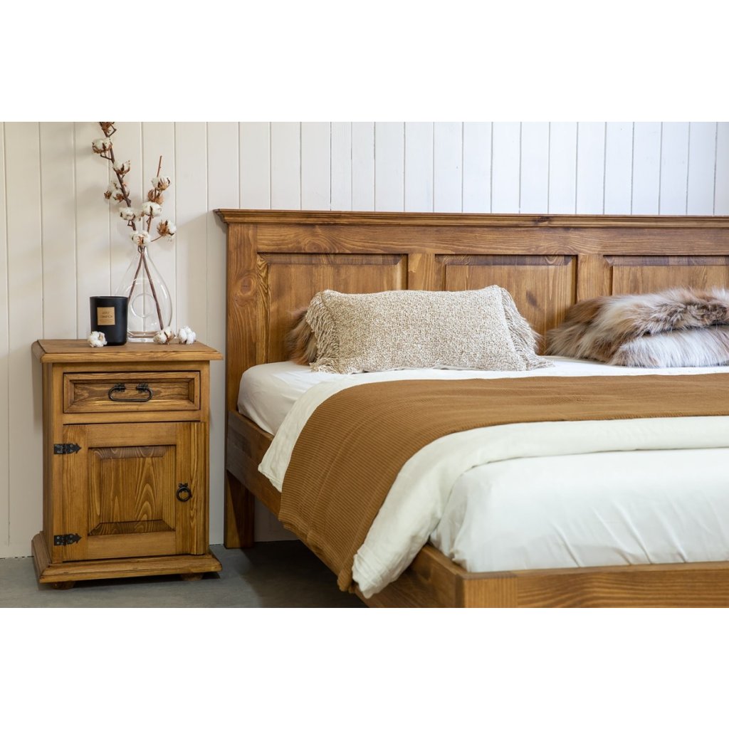 Rustikální postel CORDOBA je vyrobená z masivního borovicového dřeva, které přinese vašemu domovu teplé tony a nádhernou vůni. K ochraně nábytku přispívá rovněž nanesení kvalitního vosku na přírodní bázi, který dá vyniknout osobité kráse dřeva.