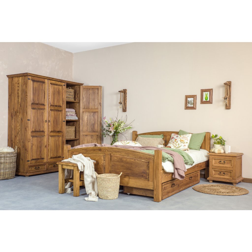 Rustikální postel CORDOBA je vyrobena z masivního borovicového dřeva, které přinese vašemu domovu teplé tony a nádhernou vůni. K ochraně nábytku přispívá rovněž nanesení kvalitního vosku na přírodní bázi, který dá vyniknout osobité kráse dřeva.