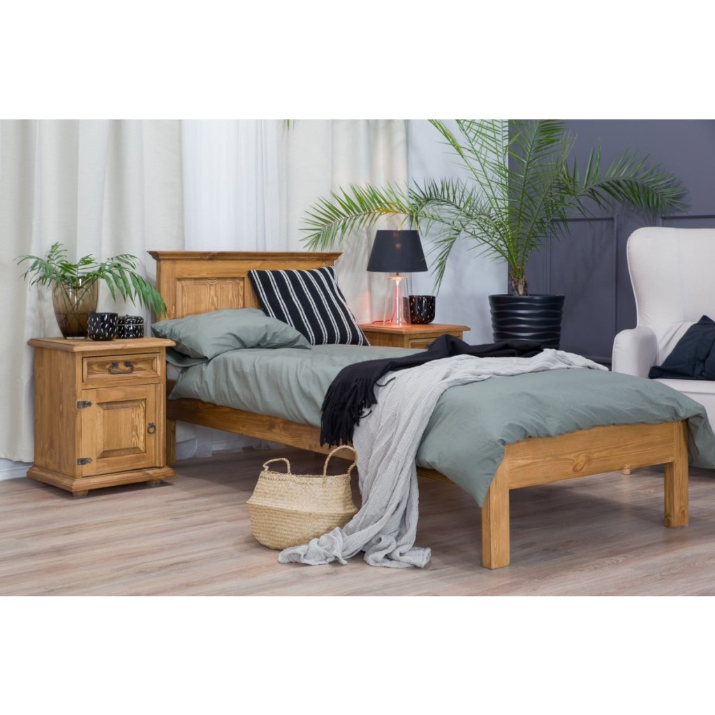 Rustikální postel CORDOBA je vyrobená z masivního borovicového dřeva, které přinese vašemu domovu teplé tony a nádhernou vůni. K ochraně nábytku přispívá rovněž nanesení kvalitního vosku na přírodní bázi, který dá vyniknout osobité kráse dřeva.