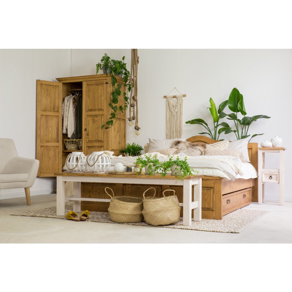 Rustikální postel CORDOBA je vyrobena z masivního borovicového dřeva, které přinese vašemu domovu teplé tony a nádhernou vůni. K ochraně nábytku přispívá rovněž nanesení kvalitního vosku na přírodní bázi, který dá vyniknout osobité kráse dřeva.