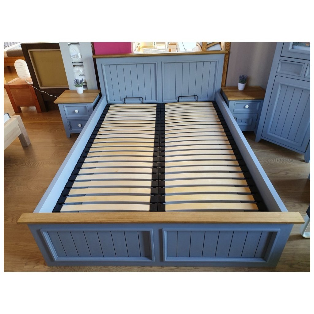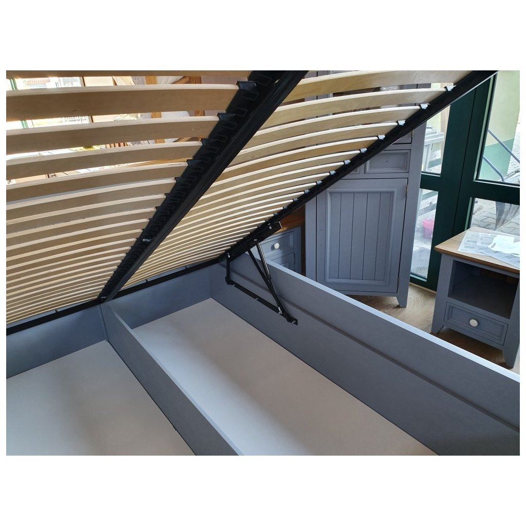 Buková mpostel PROVENCE je doplněna o vyřezávané čelo u hlavy a nohou. Nabízí dostatek úložného prostoru v celé své ploše. Součástí objednávky je rám postele, rošt s horním výklopem a úložná sestava.
