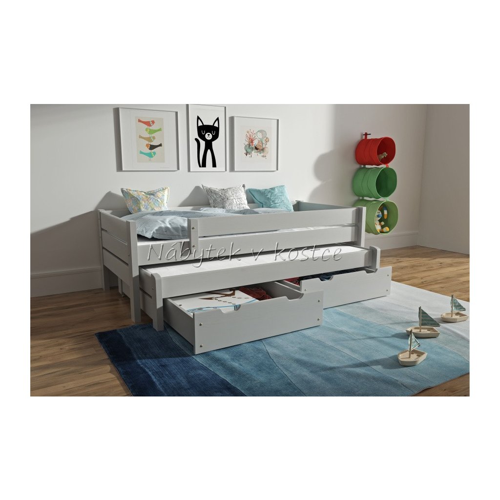 Součástí postele je i rošt. Matrace není součástí postele. Můžete si samozřejmě vybrat matraci dle vašich požadavků z naší široké nabídky matrací. Do výsuvného lůžka použijte matraci o výšce 10 cm.