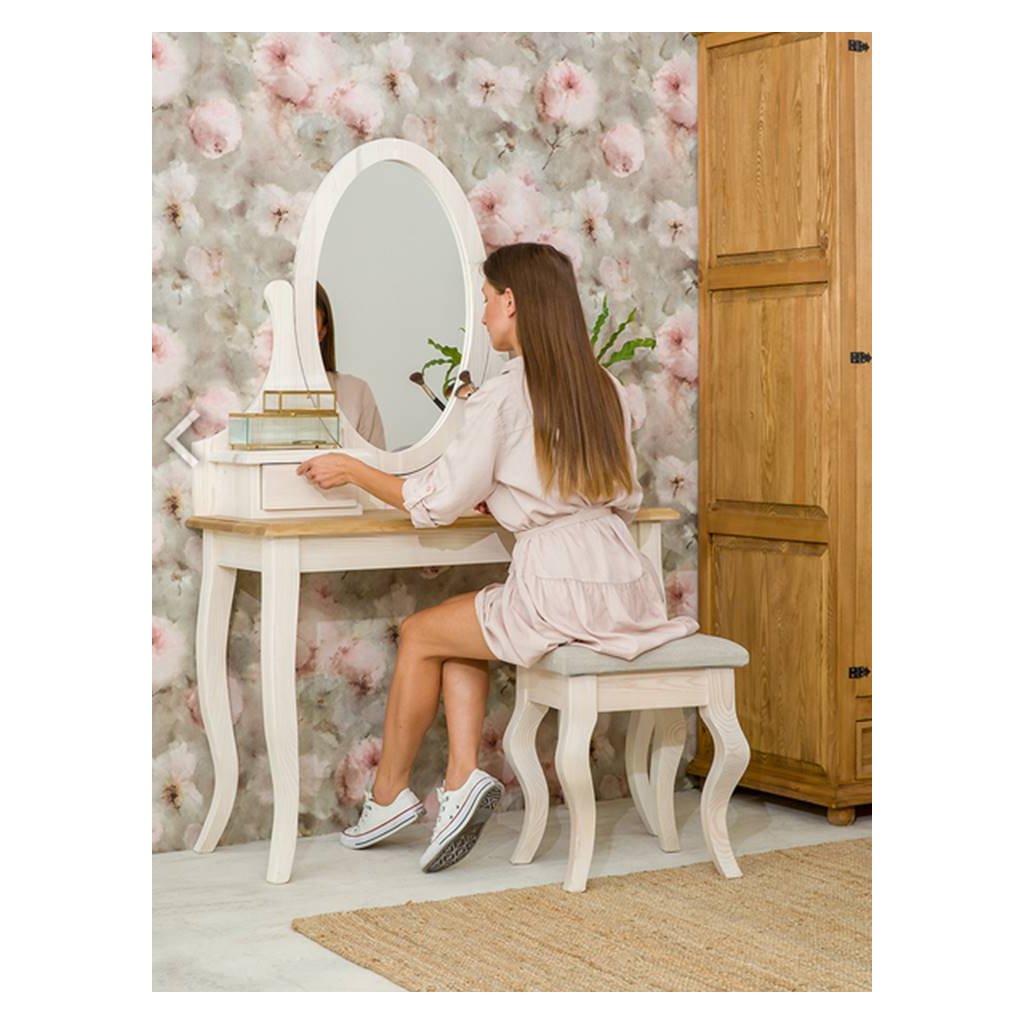 Nábytek WHITE HOME je vyroben z masivního borovicového dřeva, jen záda komod tvoří sololit a záda psacích stolů přírodní dýha. Zásuvky nemají kolejnice, ale jejich absence nebrání bezproblémovému vysouvání. Konečná úprava nábytku spočívá v ručním nanesení čistě přírodních vosků, díky kterým je nábytek stále krásny a hedvábně jemný. Vosk se používá ke konzervaci dřeva již od středověku. Jedná se o přírodní materiál, který má příznivé účinky na dřevo i dřevěný nábytek. Efektivní vzhled nábytku dotváří stylové kování a panty v černé barvě.