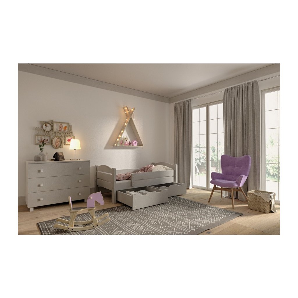 je perfektním řešením pro rodiče, kteří hledají funkční a bezpečnou postel pro svoje děti. Díky bezpečnostním bariérám, které jdou snadno odstranit, lze získat standartní samostatnou postel. Součástí postele jsou dvě prostorné zásuvky na kolečkách, které jsou ideální k uložení ložního prádla nebo hraček pro děti. Postel z Masivu Matěj je vyrobená ze smrkového masivního dřeva . Ocenitelné jsou zaoblené hrany, které ochrání pře případným poraněním. Postel má robustní a odolnou konstrukci lůžka a masivní nohy (4,5 x 9 cm).
