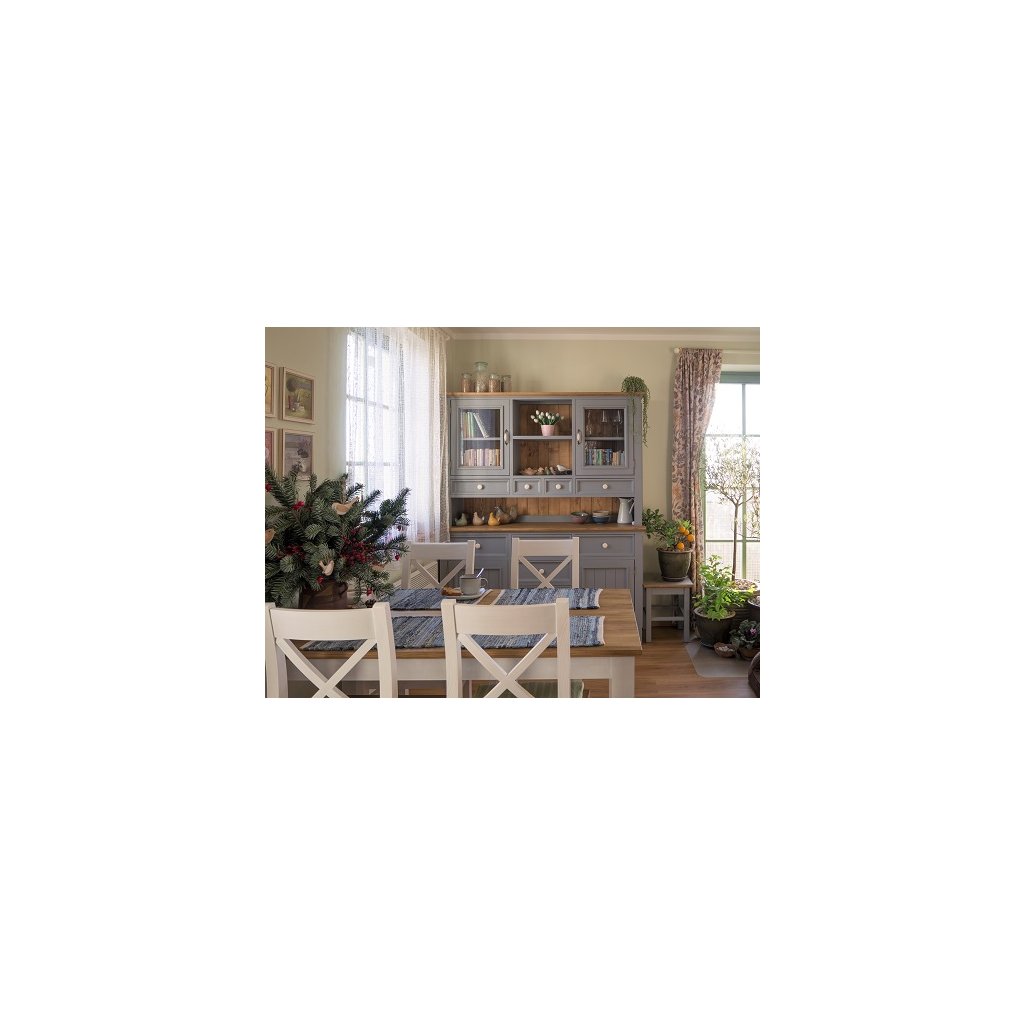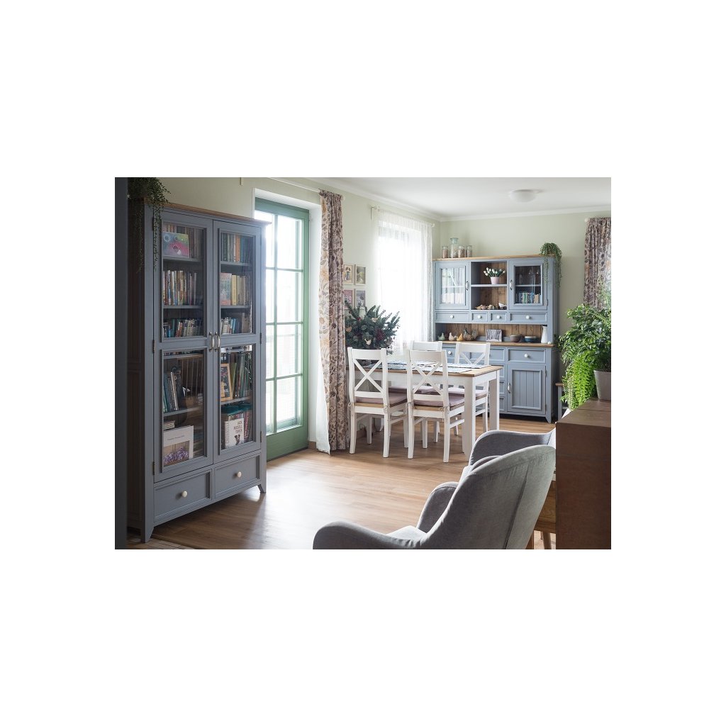 Nábytek kolekce PROVENCE je elegantní a vkusný nábytek v překrásném francouzském stylu. Nábytek je vyroben z velmi kvalitního bukového masivního dřeva a ošetřen akrylovou barvou v bílé, šedomodré, krémové a olivové barvě. Horní desky jsou vyrobeny z dubového masivního dřeva, které je ošetřeno lakem. Nábytek zvelebí veškerý interiér včetně obývacích pokojů, jídelen, ložnic a dalších místností Vašich domovů.