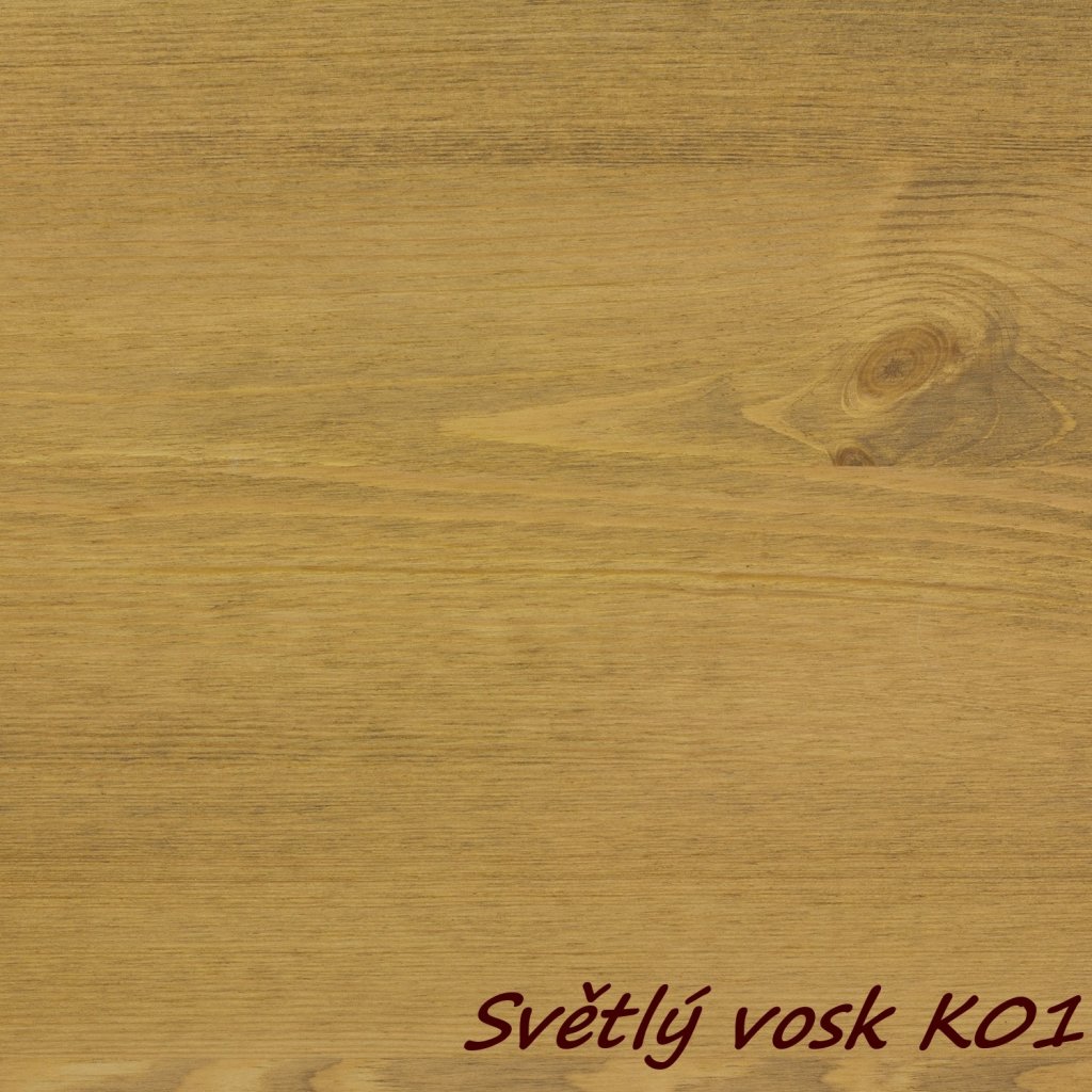 Základní cena nábytku je v bezbarvém vosku, světlém vosku, tmavém vosku a šedém vosku. Za příplatek 10% lze nábytek objednat v černém vosku.
