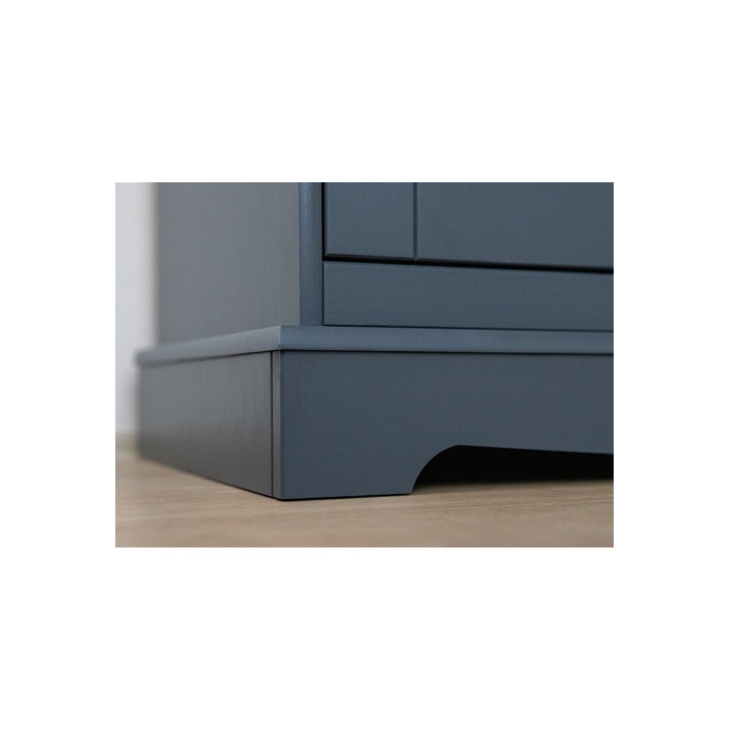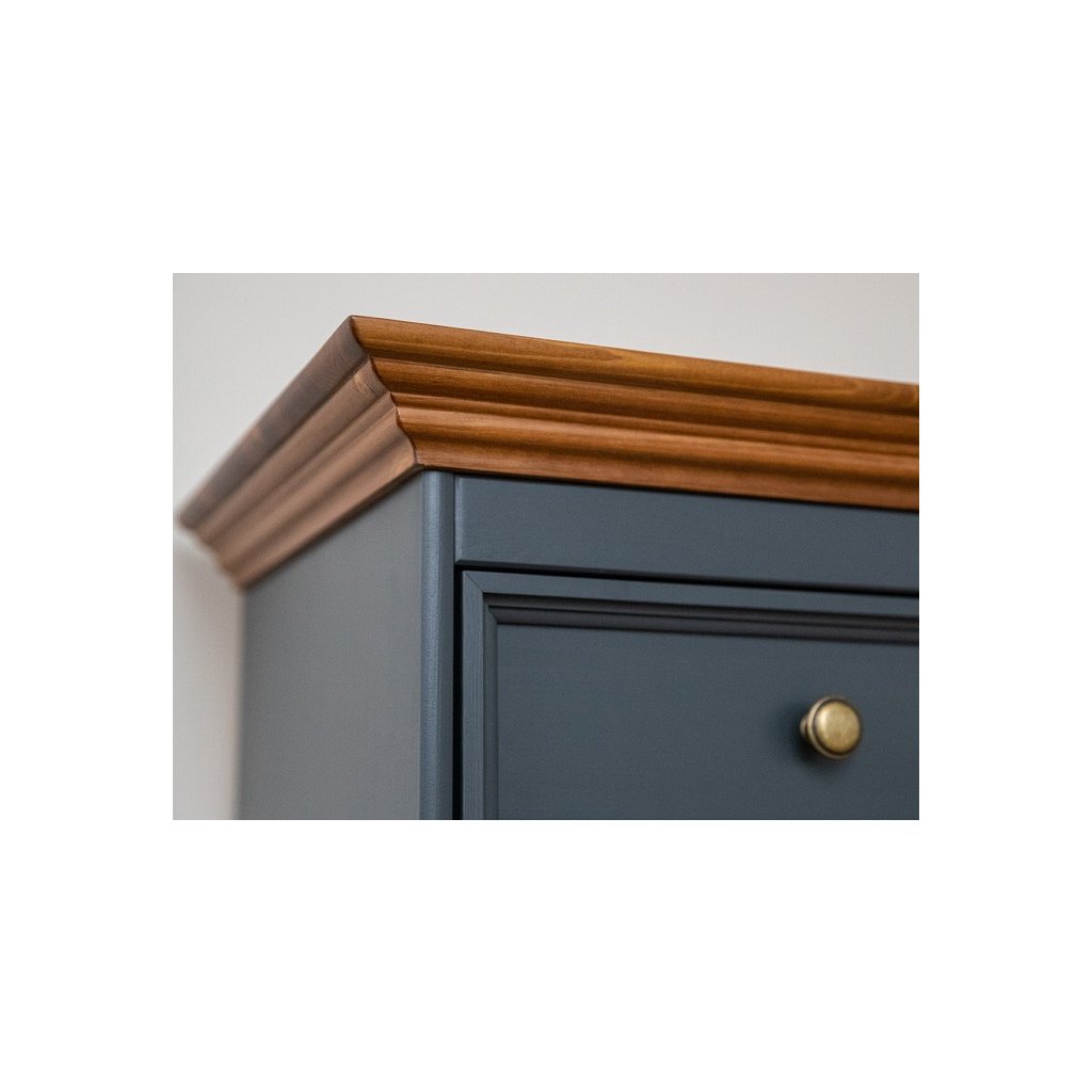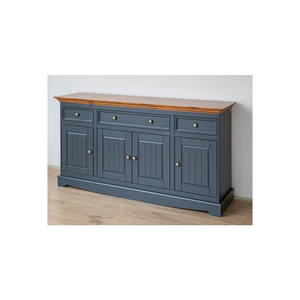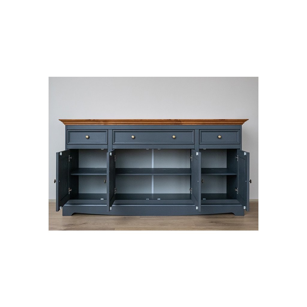 Provensálská komoda BELLUNO 4D je vyrobena z masivní finské borovice a ošetřena vodou ředitelnou barvou v odstínu grafit, která je dokonalým kontrastem ke světlým stěnám a zároveň dodá interiéru eleganci a styl. Horní deska je ošetřena mořidlem v odstínu dub a lakem.