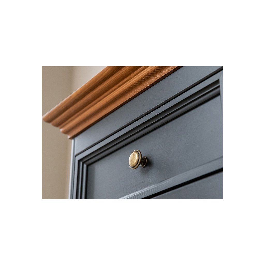 Nábytek Kolekce BELLUNO grafite je nádherný provensálský nábytek v barvě grafit, který je nejen praktický, co se údržby týče, ale rovněž zaujme svými četnými detaily. Minimalistické kování v dekoru starého stříbra, čisté linie, frézovaná dvířka, která zdůrazňují charakter a styl nábytku. Pokud už o tomto nábytku víte vše, pak určitě stojí za zmínku jistě i její nádherná barva. Nábytek je ošetřen vodou ředitelnou barvou v grafitové barvě s 90 % krytím. Pronikavá kresba dřeva s přiznanými suky potěší především milovníky přírodního dřeva. Horní deska je ošetřena mořidlem a lakem na vodní bázi v barvě dubu nebo přírodní borovice.