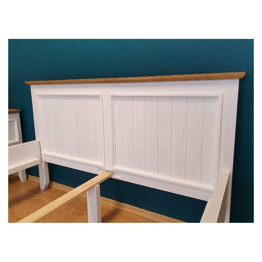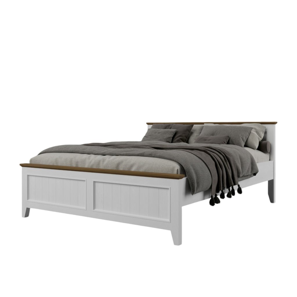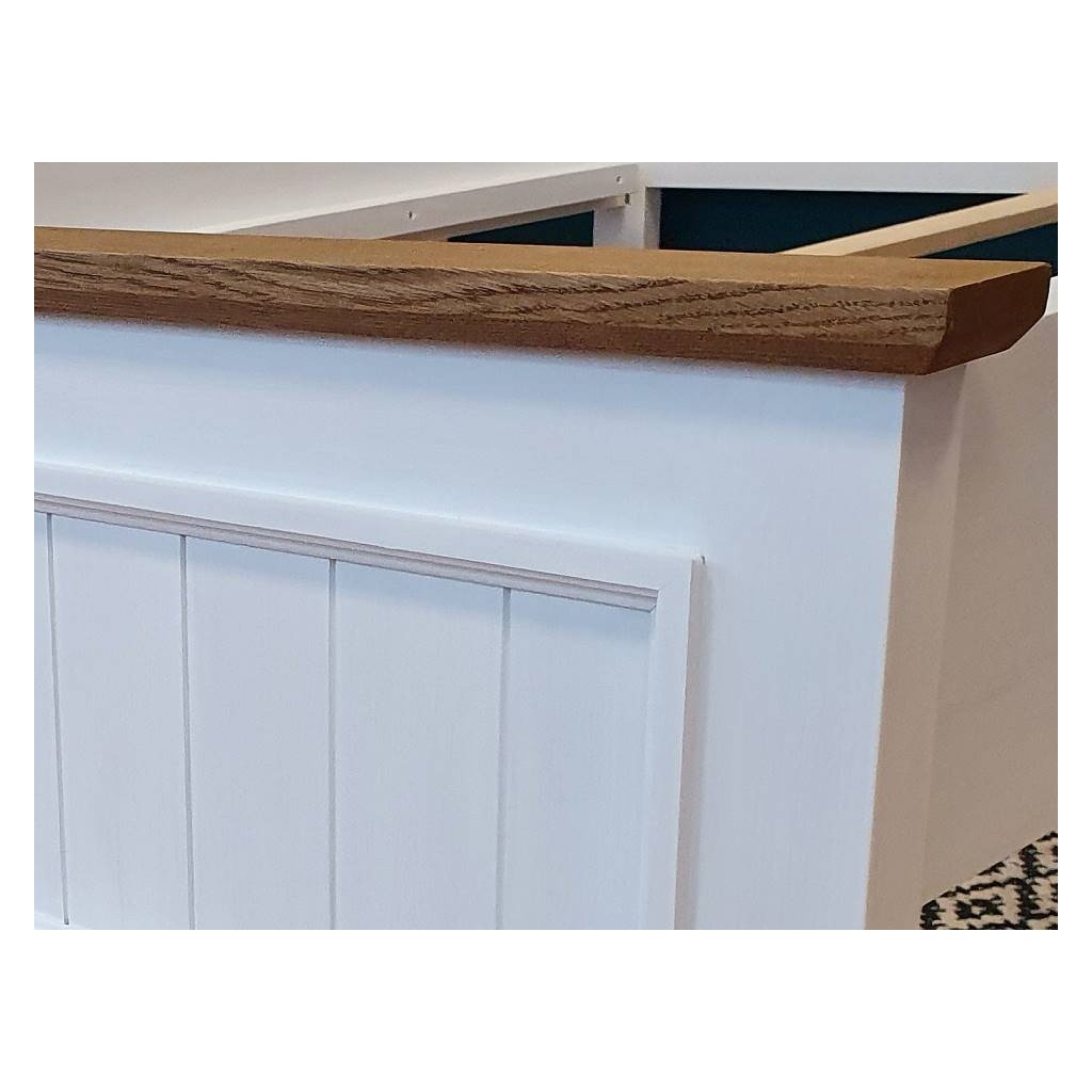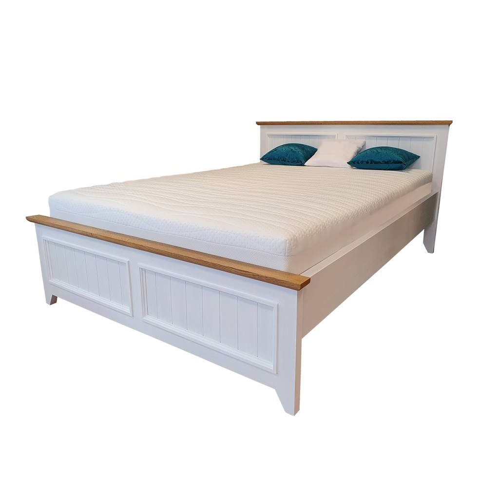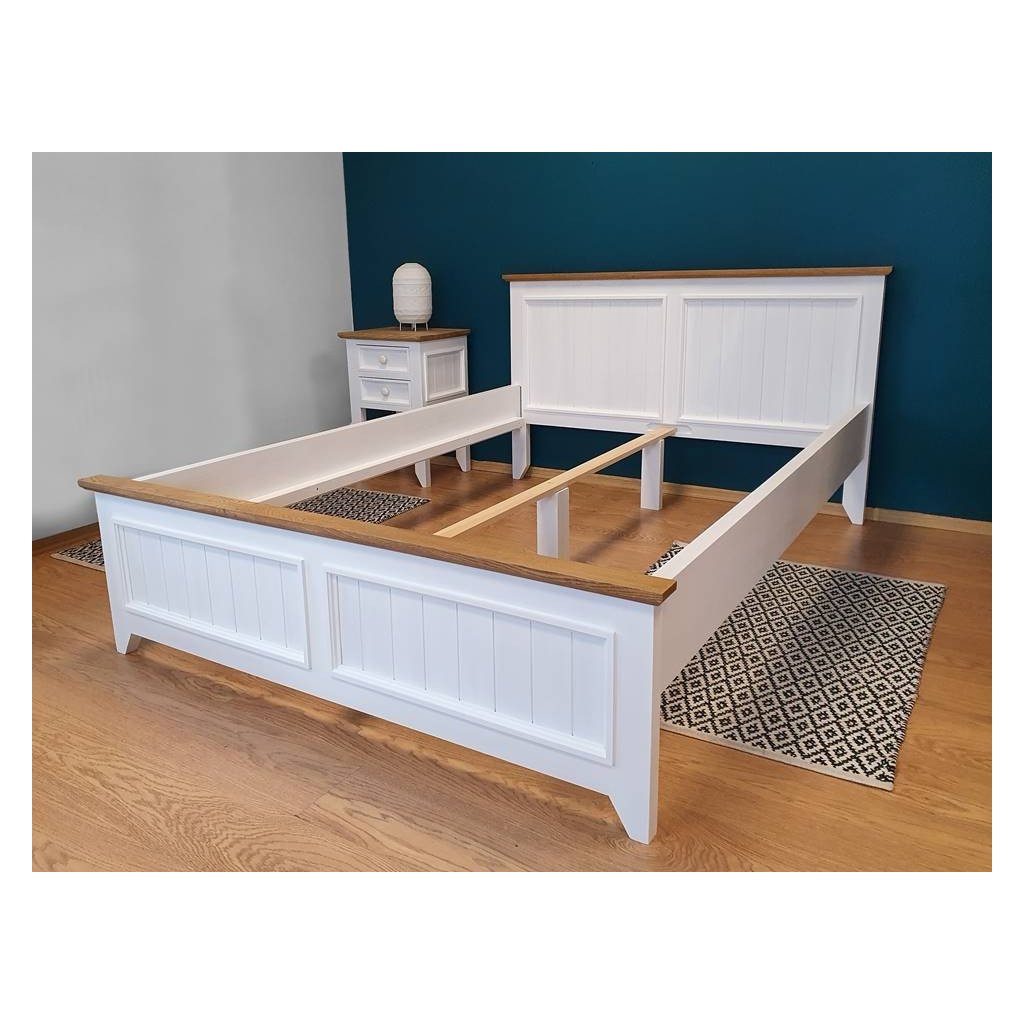 Masivní postel PROVENCE je spojením bukového a dubového dřeva. Dubové dřevo (horní deska) je ošetřeno lakem a bukové dřevo je ošetřeno akrylovou barvou v bílé anebo krémové barvě.
