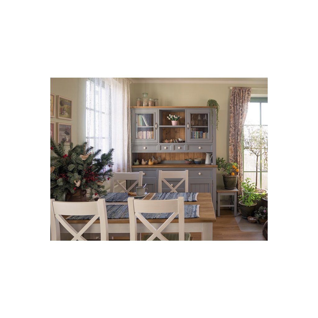 Kolekce PROVENCE to je stylový, vkusný a jemný nábytek v oblíbeném francouzském stylu. Nábytek PROVENCE je vyroben z masivního bukového dřeva a ošetřen akrylovou barvou v bílé či šedé barvě. Horní hnědé částí jsou vyrobeny z masivního dubového dřeva a ošetřeny lakem. Spojením těchto dvou materiálů jsme docílili opravdu velmi efektivního vzhledu, který hned tak nikdo nepřehlédne.