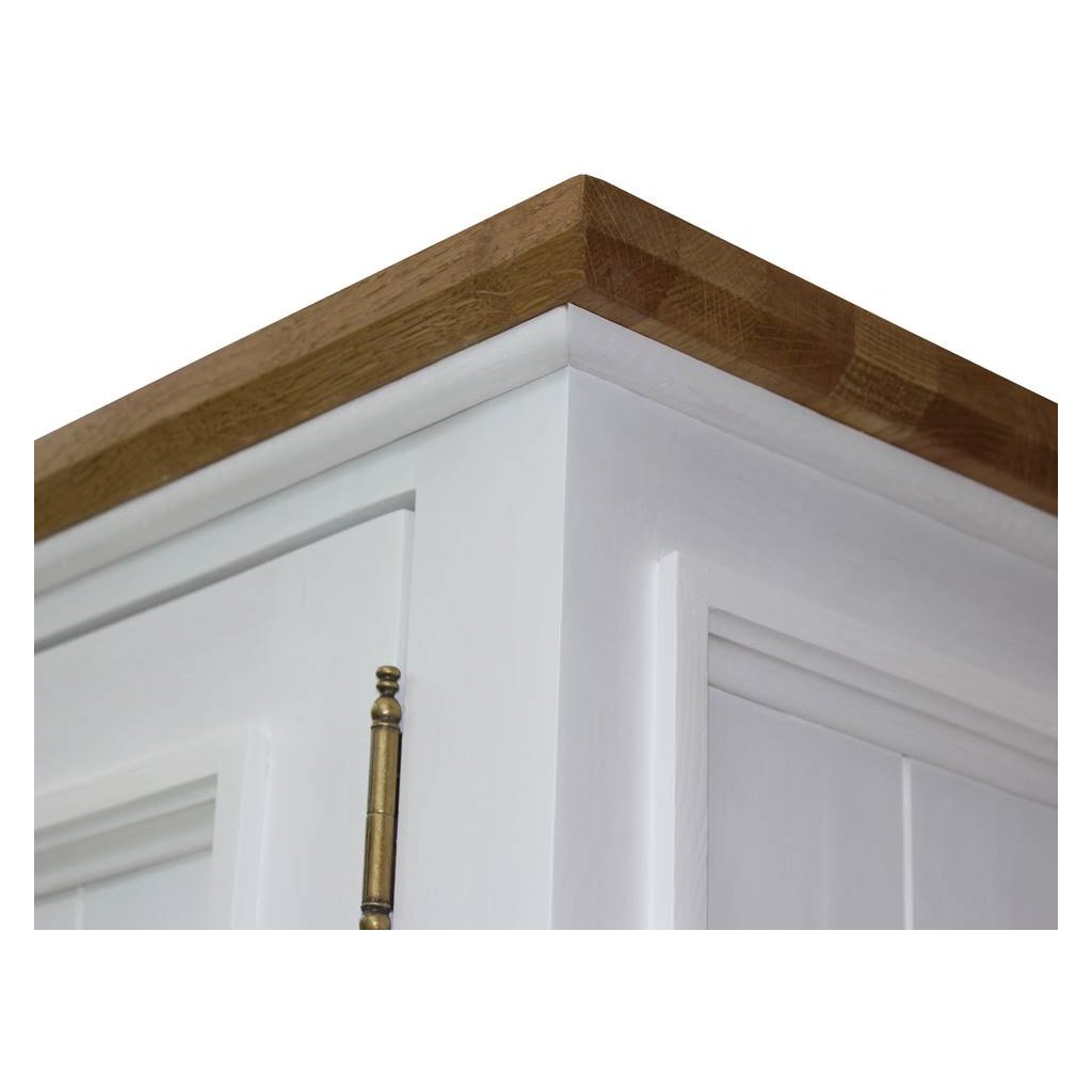Masivní provensálská skříň PROVENCE je spojením bukového a dubového dřeva. Dubové dřevo (horní deska) je ošetřeno lakem a bukové dřevo je ošetřeno akrylovou barvou v krémové barvě. Šuplíky jsou bez pojezdu. Možnost objednání se systémem tichého dovírání (u šuplíků) - cena na dotaz.