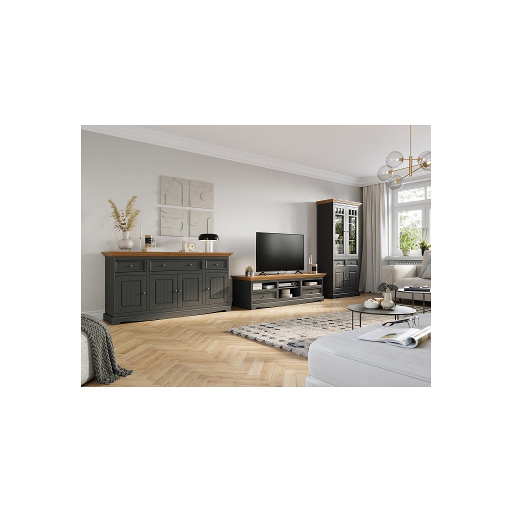 Provensálská vitrína BELLUNO grafit 2D grafit-dub