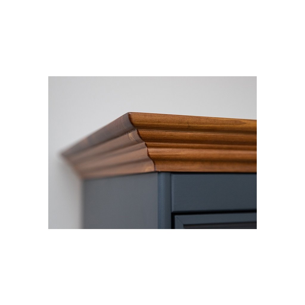 Nábytek Kolekce BELLUNO grafite je nádherný provensálský nábytek v barvě grafit, který je nejen praktický, co se údržby týče, ale rovněž zaujme svými četnými detaily. Minimalistické kování v dekoru starého stříbra, čisté linie, frézovaná dvířka, která zdůrazňují charakter a styl nábytku. Pokud už o tomto nábytku víte vše, pak určitě stojí za zmínku jistě i její nádherná barva. Nábytek je ošetřen vodou ředitelnou barvou v grafitové barvě s 90 % krytím. Pronikavá kresba dřeva s přiznanými suky potěší především milovníky přírodního dřeva. Horní deska je ošetřena mořidlem a lakem na vodní bázi v barvě dubu nebo přírodní borovice.
