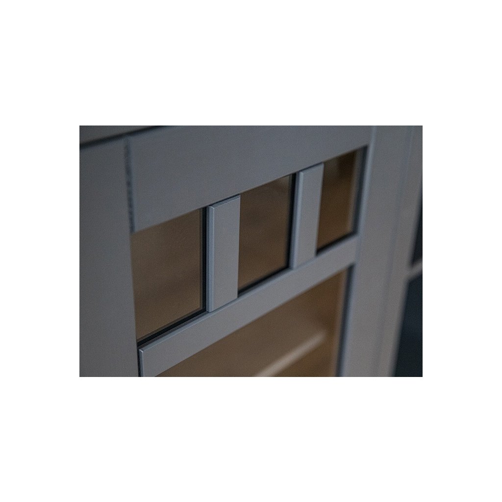 Zdědili jste pravé porcelánové nádobí anebo jste milovník knih a máte doma hodnotnější díla, která by měla být chráněna před poškozením a prachem? Pokud ano, pak Vás jistě zaujme vysoká vitrína v grafitové barvě, jejíž předností je dokonalý design efektní frézování a půvabné kování. Tyto neobvyklé detaily plně odrážejí provensálský styl bydlení, který si oblíbilo nespočet našich klientů.