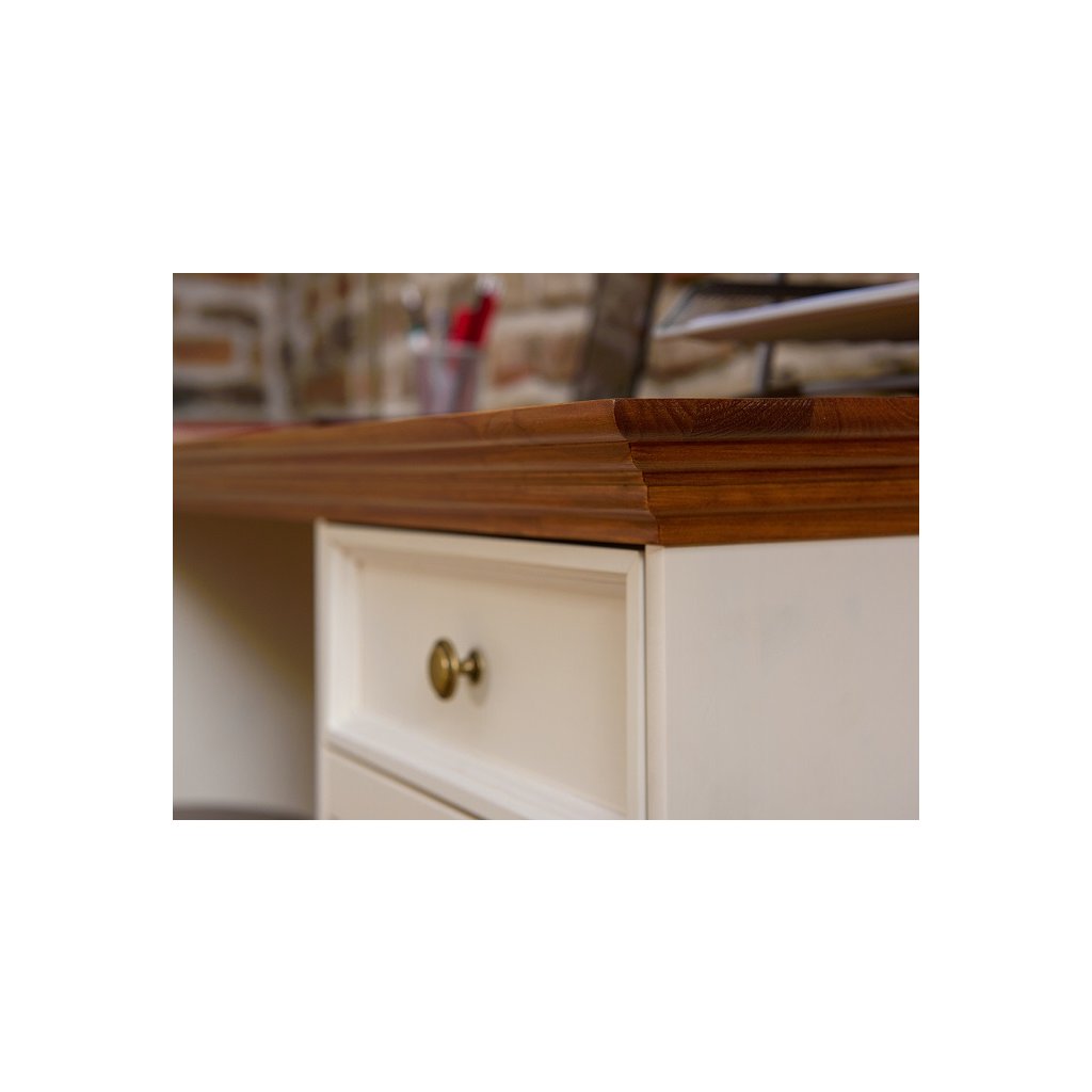 Borovicový stůl BELLUNO Elegante je vhodnou volbou pro minimalisty, kteří milují klasický nábytek. Jedná se o masivní bílý stůl s dřevěnou deskou, který je ideální pro práci nebo studování a hodí se do každé domácnosti. Díky šuplíku a skříňce na straně stolu vám poskytne stůl dostatek úložného prostoru při práci nebo studiu. Šuplík je navíc vybaven systémem tichého zavíraní. Přírodní dřevo, ze kterého je stůl vyroben, dodává neopakovatelnou atmosféru interiéru.