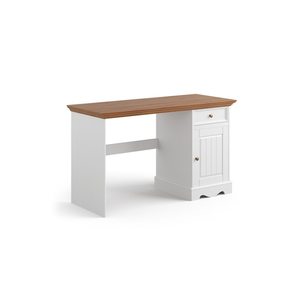 Psací stůl BELLUNO Elegante (single) z masivu bílý-dub