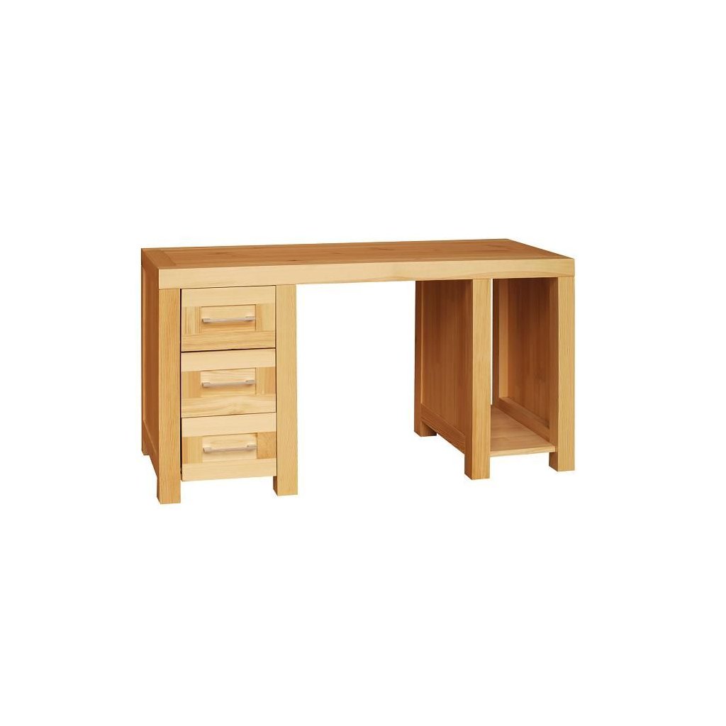 Psací stůl z masivu DEL SOL - přírodní borovice je elegantní a praktický kus nábytku, který se hodí do domácí pracovny, studentského pokoje nebo kanceláře. Je vyroben z kvalitního borovicového masivu s minimem suků, což zajišťuje jeho pevnost a dlouhou životnost. Povrch stolu je dvakrát natřený polomatným lakem, který zvýrazňuje přirozenou kresbu dřeva a poskytuje ochranu proti opotřebení.