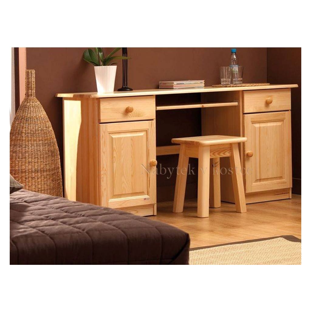 PC stolek Praděd BR101 vlastní dostatečně velkou pracovní plochu a praktickou přepážku, kterou ocení nejen klávesnice Vašeho počítače. Skříňky s policemi s dvě zásuvky po stranách, poskytnou úschovnu na různé nezbytnosti Vám anebo Vašemu školákovi. Stůl se prezentuje pečlivým zpracováním, vynikající stabilitou a dlouhou životností. K tomuto psacímu stolu doporučujeme židle z borovice.