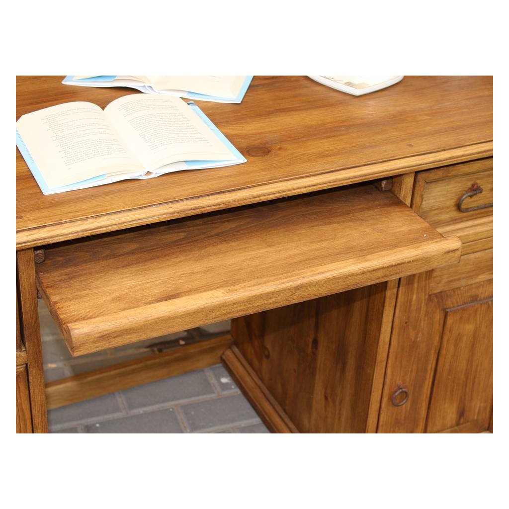 Psací stůl MEXICANA BIR24 je vyroben z jakostního masivního borovicového dřeva a ošetřen voskem nebo lakem, jehož barevnou variantu si můžete zvolit (vosk světle hnědý-medový, kaštan, ořech, dub tmavý a dub kouřový, vosk bezbarvý). Vosk je ručně nanášen štětcem.