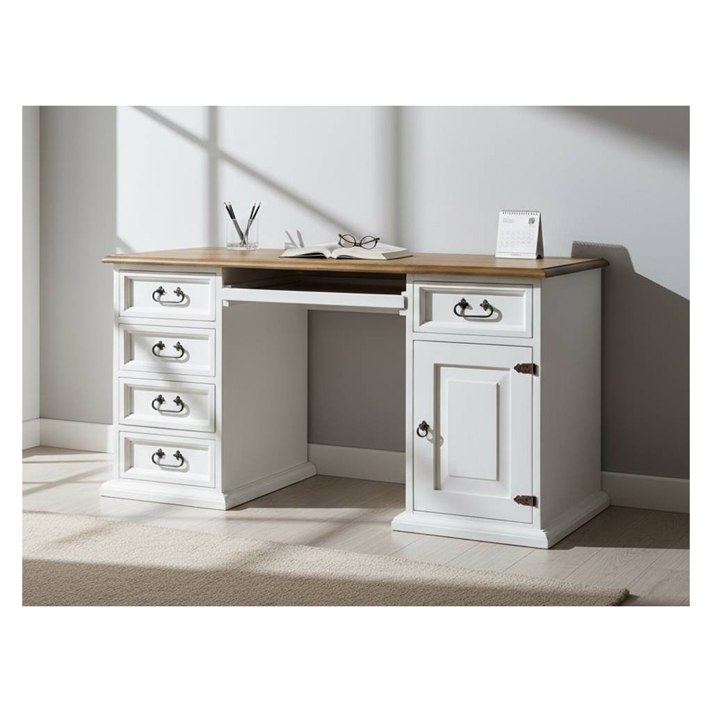 Psací stůl SWEET HOME BIR14 disponuje četností úložných prostor. Stůl nabízí 4 šuplíky (d. 32,5 - v. 14,5 cm), v druhé části pak šuplík a policovou skříňku s dvířky (v. 49,5 – š. 32,5 cm) s ozdobným frézováním. Dvířka i šuplíky vlastní ozdobné frézování, díky němuž stůl získává rustikální charakter a romantickou podobu. Oceníte také dostatečně prostornou, 7 cm vysokou výsuvnou desku na klávesnici Vašeho počítače.