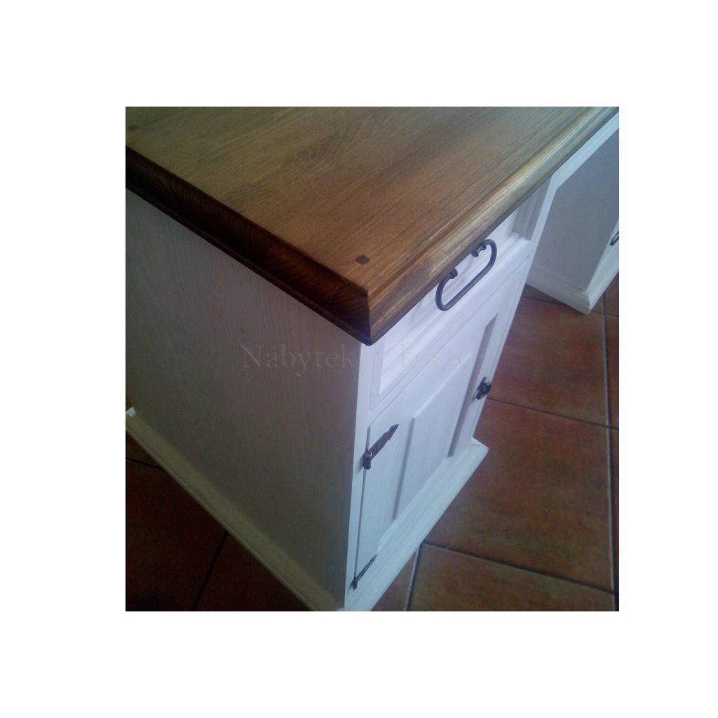 Psací stůl SWEET HOME BIR14 je masivní stůl, vyrobený z borovicového masivního dřeva (zadní stranu skříněk tvoří dřevěná dýha) a ošetřen bílou vodou ředitelnou barvou. Hnědé plochy mohou být ošetřeny voskem anebo lakem. Boční desky i boky šuplíků jsou vyrobeny z 2 cm masívu. Z masivu jsou rovněž vyrobeny i drážky na pojezdy a vrchní 3 cm vysoká deska pracovního stolu. Spodní sokl (3 cm) je po celém obvodu stolu, tudíž i mezi skříňkami v zadní části.