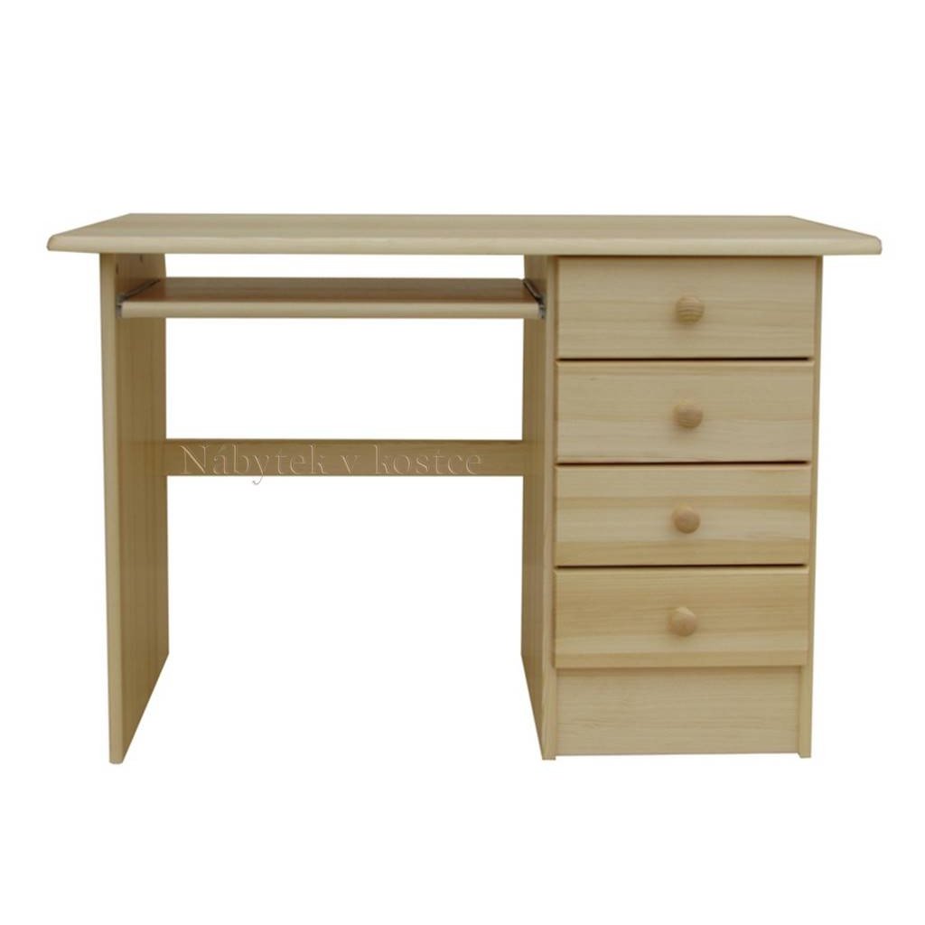 Psací stůl vlastní pracovní plochu s praktickou výsuvnou přepážku, kterou ocení nejen klávesnice Vašeho počítače. Psací stůl dále nabízí čtyři zásuvky na kolejničkách s 2/3 výsuvem. Stůl se prezentuje pečlivým zpracováním, vynikající stabilitou a dlouhou životností. K tomuto psacímu stolu doporučujeme židle z borovice.