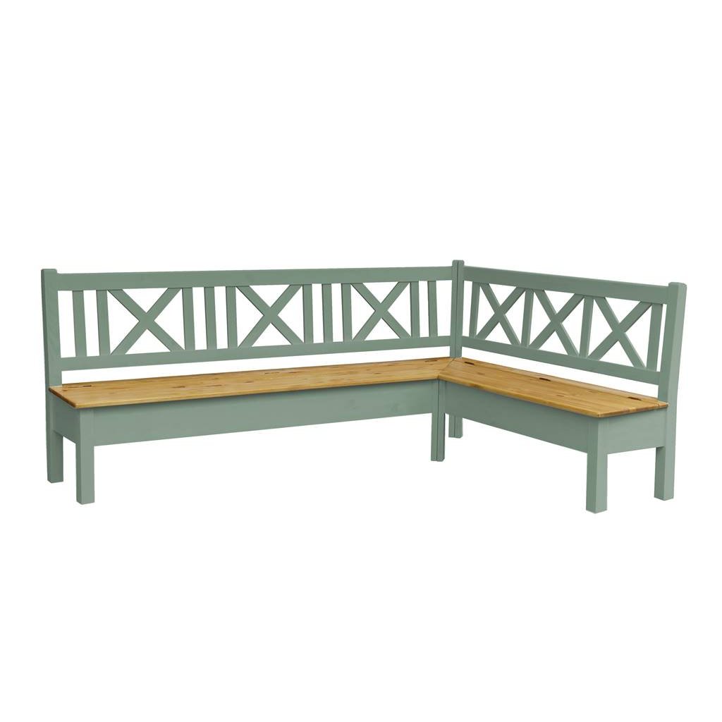 Masivní rohová lavice PROVENCE je vyrobena z masivního borovicového dřeva. Sedací část je ošetřena lakem a nohy lavice akrylovou barvou v olivové šedomodré. Horní deska může být vyrobena z borovicového anebo dubového dřeva. Uvedená cena lavice je za 1 bm.