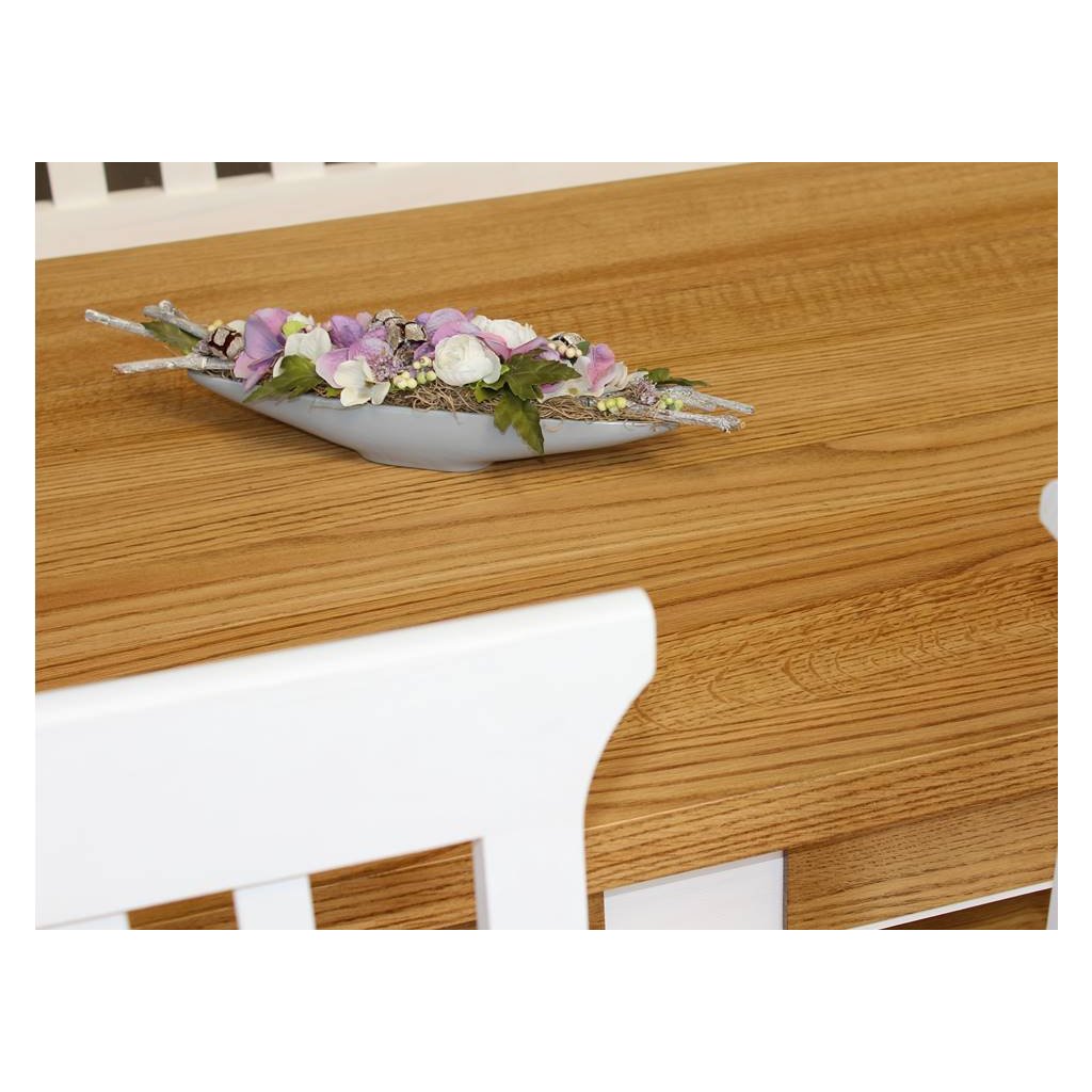 Masivní jídelní set PROVENCE je vyroben z masivního borovicového dřeva. Horní deska je vyrobena z dubového dřeva. Horní desky jsou ošetřeny lakem a nohy stolu akrylovou barvou v bílé či šedomodré barvě.