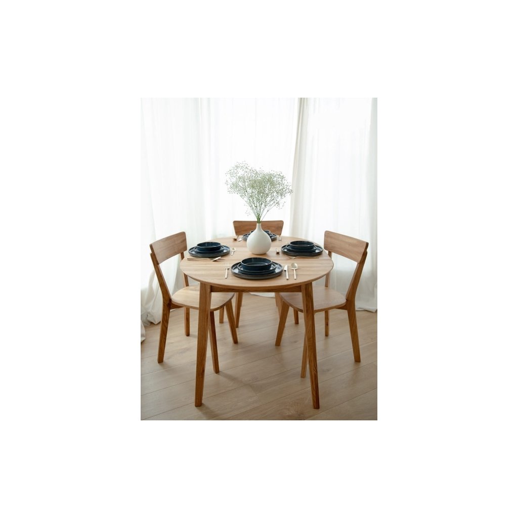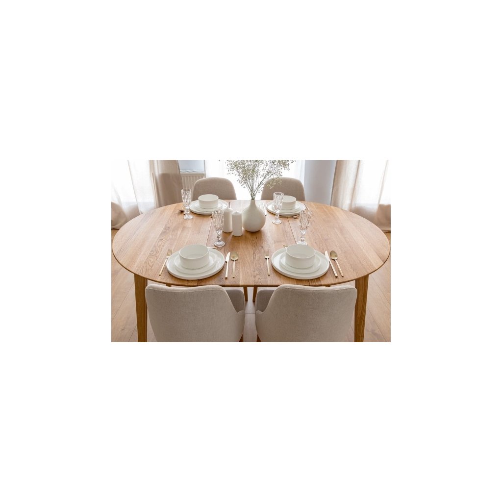 Prezentovaný stůl se vyznačuje svou elegancí a nadčasovostí. Jednoduchá konstrukce a teplé zbarvení dubového dřeva umožňuje zkombinovat stůl s téměř každým stylem interiéru. Nejdokonaleji však vynikne v jídelnách, kuchyních či obývacích pokojích zařízených v rustikálním či skandinávském naladění.