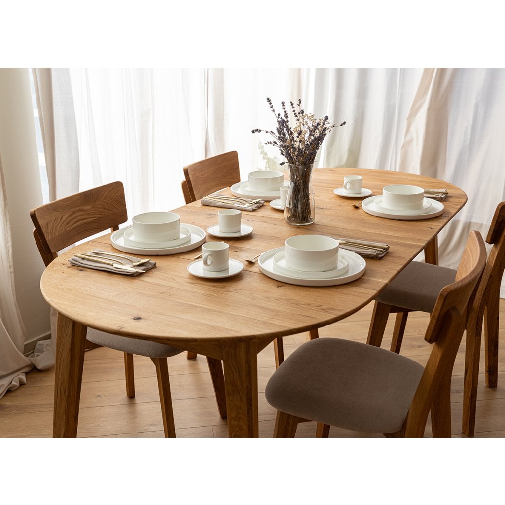 Dubový jídelní stůl se vyznačuje svou elegancí a nadčasovostí. Jednoduchá konstrukce a teplé zbarvení dubového dřeva umožňuje zkombinovat stůl s téměř každým stylem interiéru. Nejdokonaleji však vynikne v jídelnách, kuchyních či obývacích pokojích zařízených v rustikálním či skandinávském naladění.
