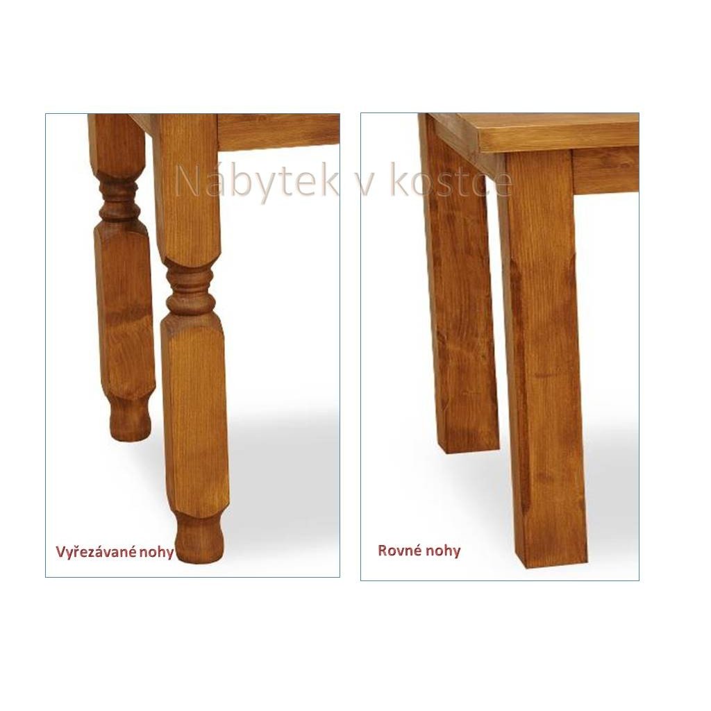 Rustikální stůl MEXICANA MES1 je vyroben z borovicového masivního dřeva a ošetřen voskem nebo lakem. Barevnou variantu si můžete zvolit sami, dle vzorníku ( světle hnědá- medová, kaštan, ořech, dub tmavý, dub kouřový anebo vosk bezbarvý). Uvádějte prosím zvolený tvar nohou (vyřezávé anebo rovné). Tloušťka nohou je 8cm, deska stolu 4cm.