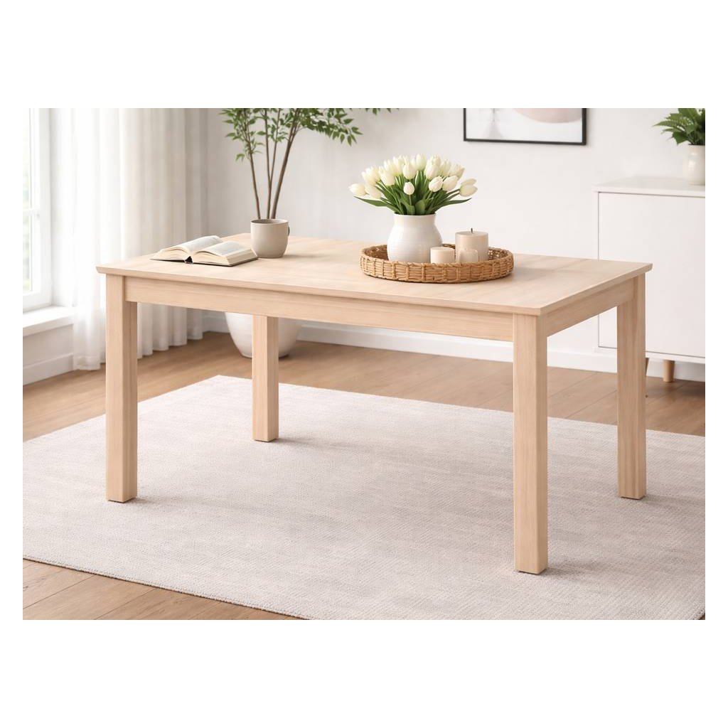 Rozkládací jídelní stůl působí díky vymasivním nohám velmi elegantně a masivně. Jistě se stane ozdobou vaší jídelny nebo pokoje. Jídelní stůl je vyroben z borovicového masívu a ošetřen bezbarvým lakem, anebo v několika barevných odstínech. Je vhodný i k nábytku z masivu jako jsou komody nebo vitríny. K tomuto stolu doporučujeme židle z masivu.