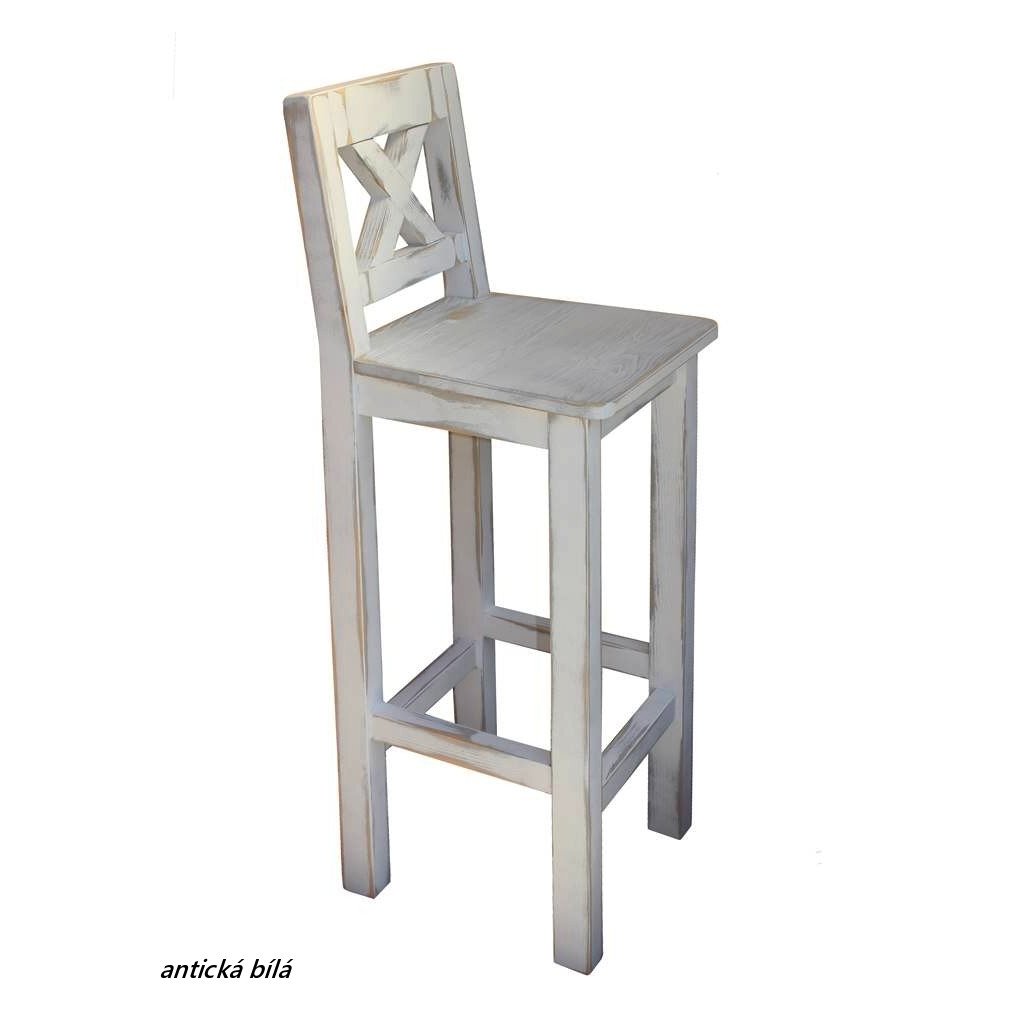 Bílá rustikální barová židle WHITE HOME, dřevěný barový nábytek.
