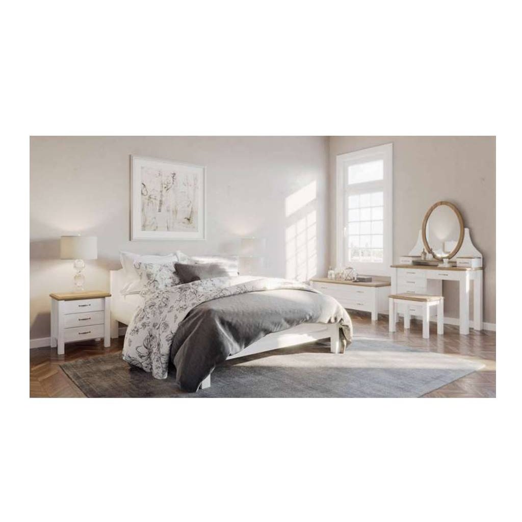 Bílá romantická postel AUSTIN je dodávaná spolu s dřevěným rámem a roštem. Matrace není součástí dodávky. Postel je dodávaná bez nočních stolků.