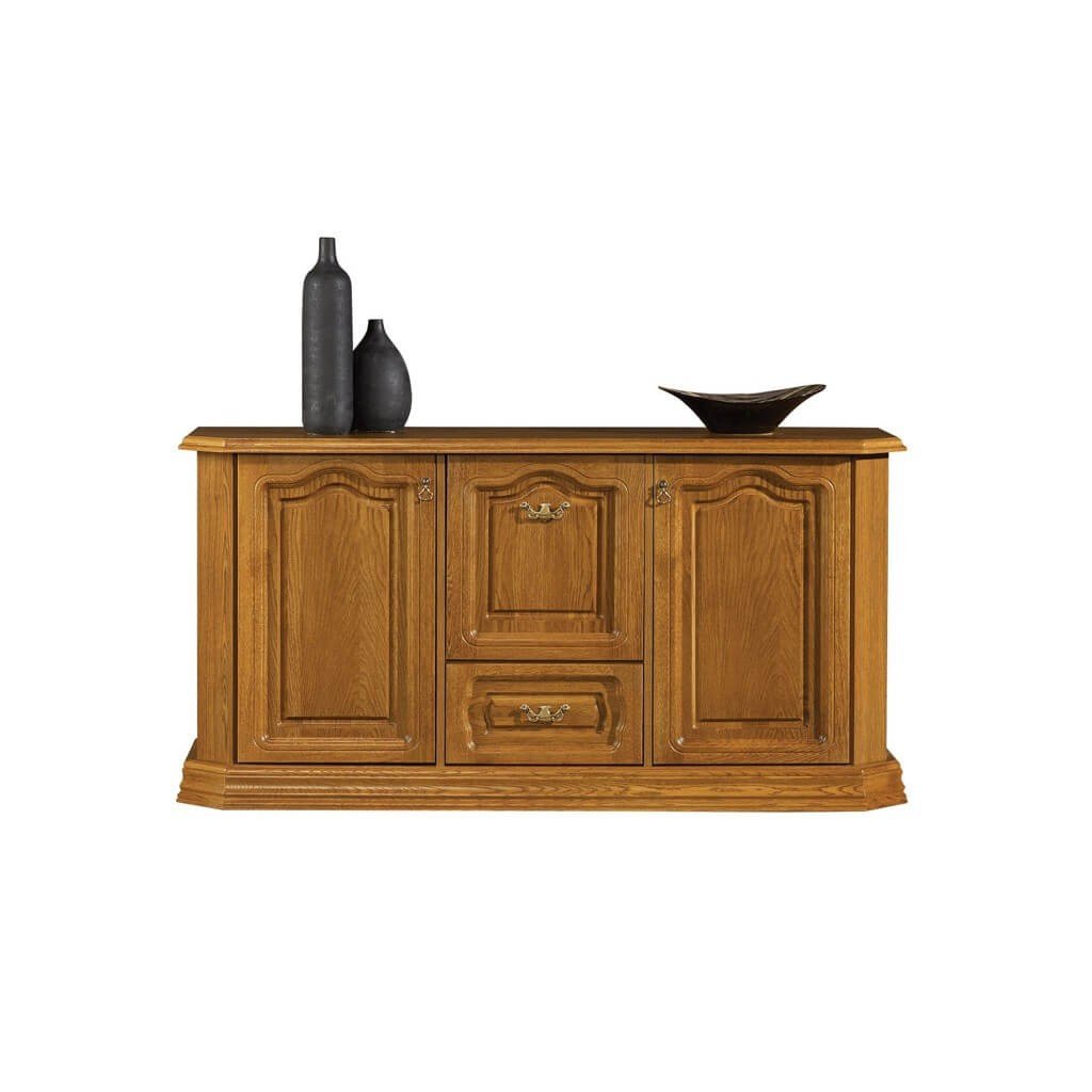 Rustikální komoda KINGA s barem je stylová rustikální komoda, která vnese do vašeho obývacího pokoje luxusní vzhled. U této komody je přední část zhotovená z dubového masivu, boky jsou z lamina, horní a dolní část tvoří lakovaná MDF.