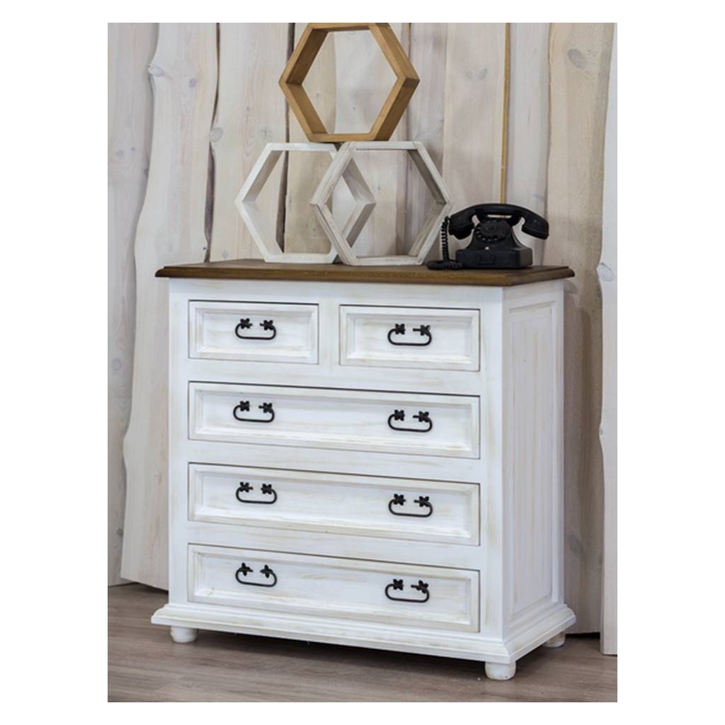 Komoda WHITE HOME COM 05 je určena všem, kteří hledají pro své interiéry nábytek ve stylu Provence, retro nábytek, bílý venkovský a vesnický nábytek či selský nábytek.