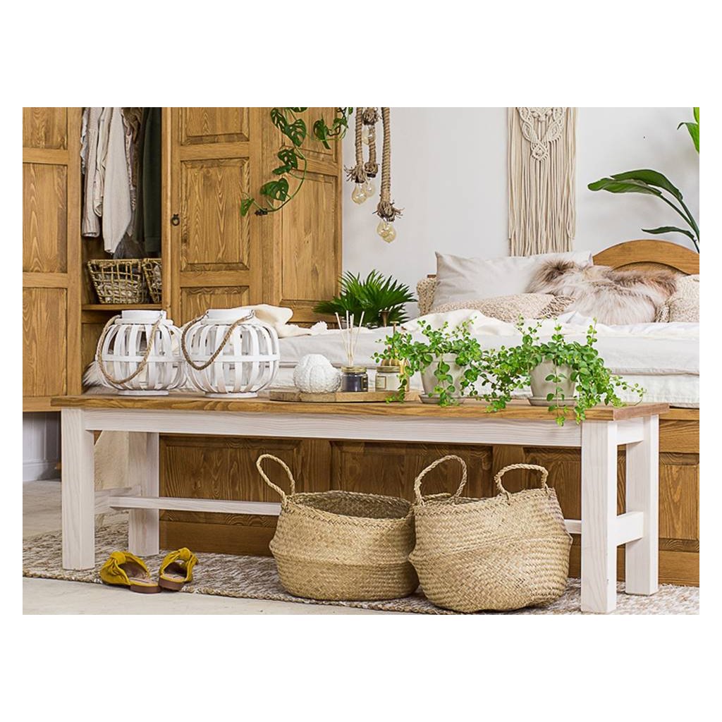 Nábytek WHITE HOME je vyroben z masivního borovicového dřeva, jen záda komod tvoří sololit a záda psacích stolů přírodní dýha. Zásuvky nemají kolejnice, ale jejich absence nebrání bezproblémovému vysouvání. Konečná úprava nábytku spočívá v ručním nanesení čistě přírodních vosků, díky kterým je nábytek stále krásny a hedvábně jemný. Vosk se používá ke konzervaci dřeva již od středověku. Jedná se o přírodní materiál, který má příznivé účinky na dřevo i dřevěný nábytek. Efektivní vzhled nábytku dotváří stylové kování a panty v černé barvě.