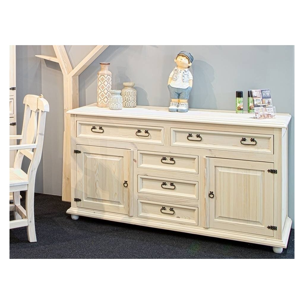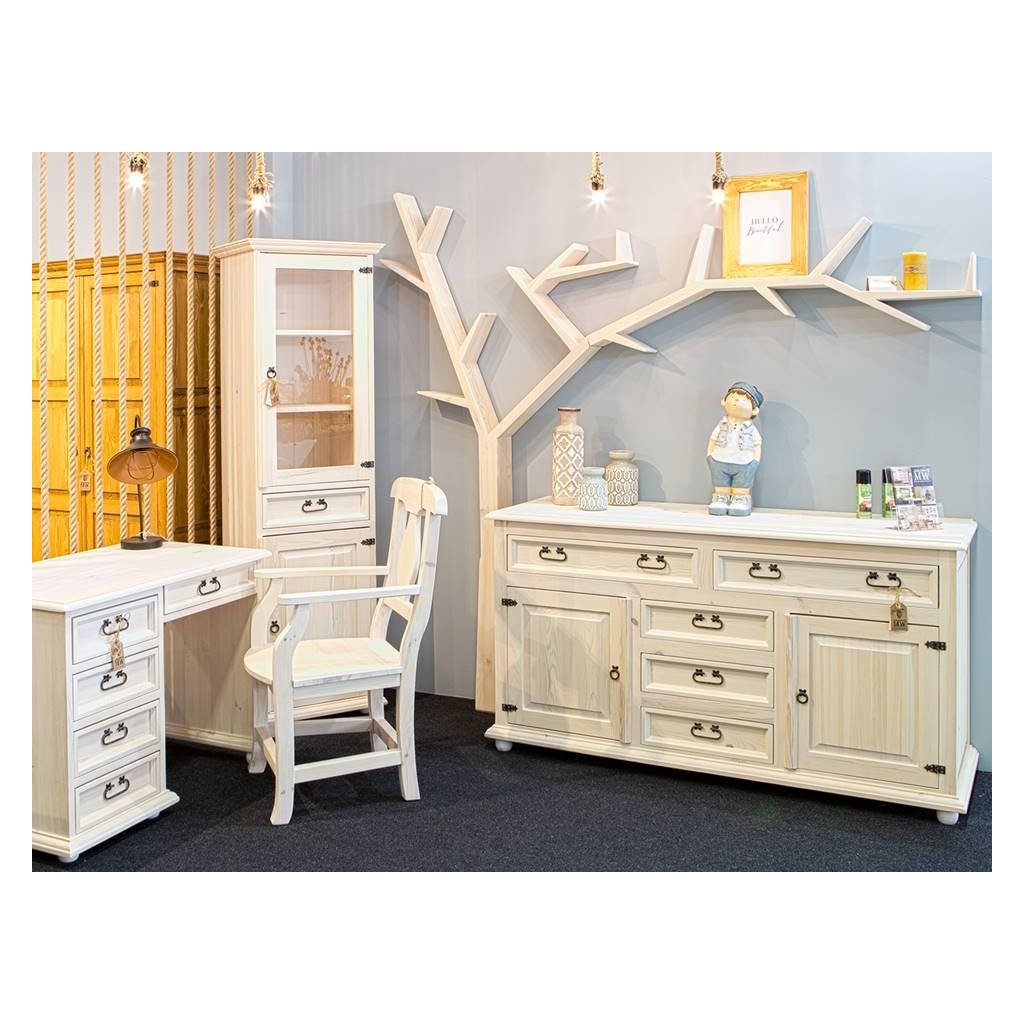 Komoda CORDOBA COM 19 je vyrobená z borovicového masivního dřeva a ošetřena voskem v bílé či v dvoubarevné kombinaci, dle Vašeho přání. Zadní část komody tvoří sololit. Komoda stojí na čtyřech nožkách ve tvaru koule.