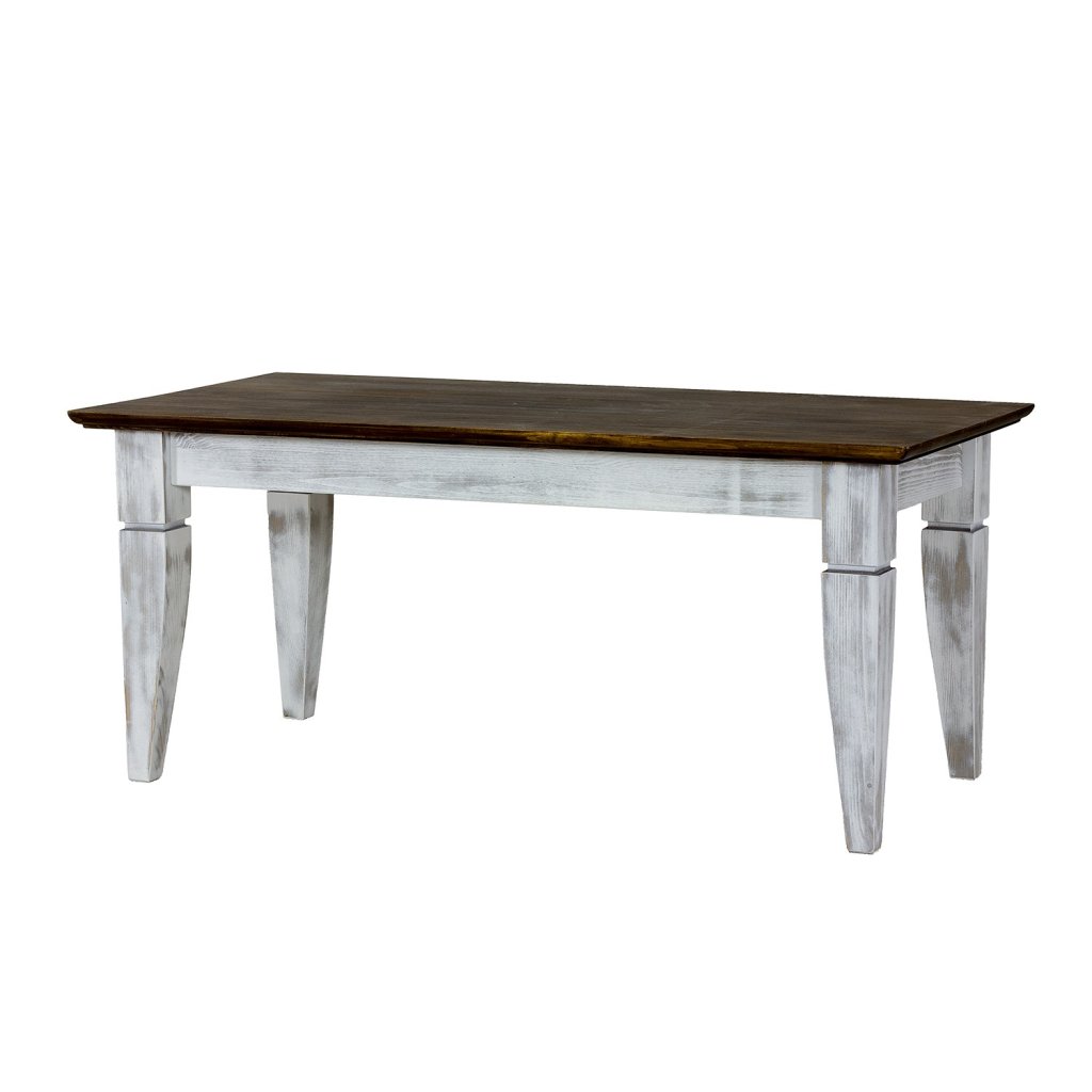 Rustikální konferenční stolek KOLMAR je vyrobený z kvalitního masivního borovicového dřeva a ošetřen voskem. Vosk je ručně nanášen štětcem. V naší nabídce můžete vybírat z více barevných variant vosku. Standardním odstínem kolekce KOLMAR je antická bílá kombinovaná s hnědým voskem.