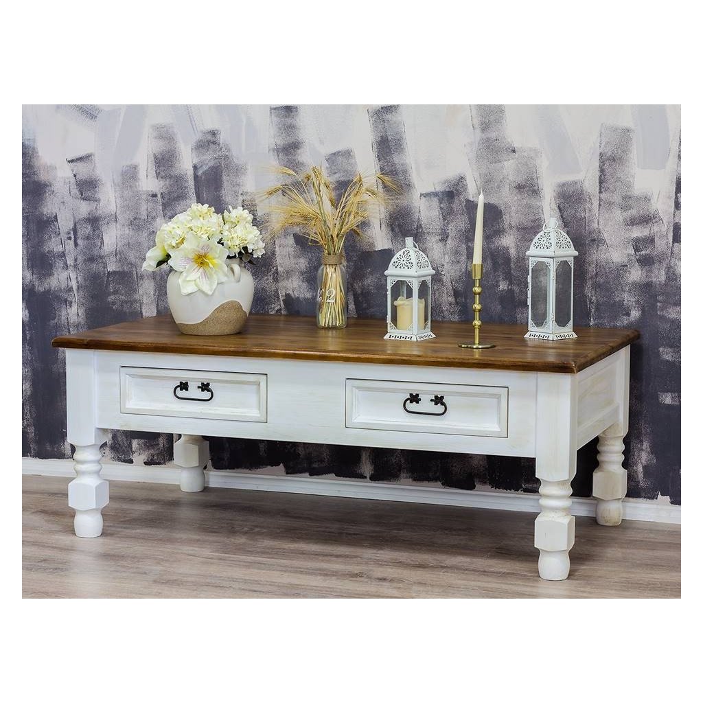 Rustikální konferenční stolek WHITE HOME MES 07 je reprezentativní luxusní voskovaný konferenční stolek s patinovým efektem, který Vás zaujme nejen svým dominantním vzhledem, ale i kvalitním provedením, který oceníte především v interiéru Vašeho obývacího pokoje.