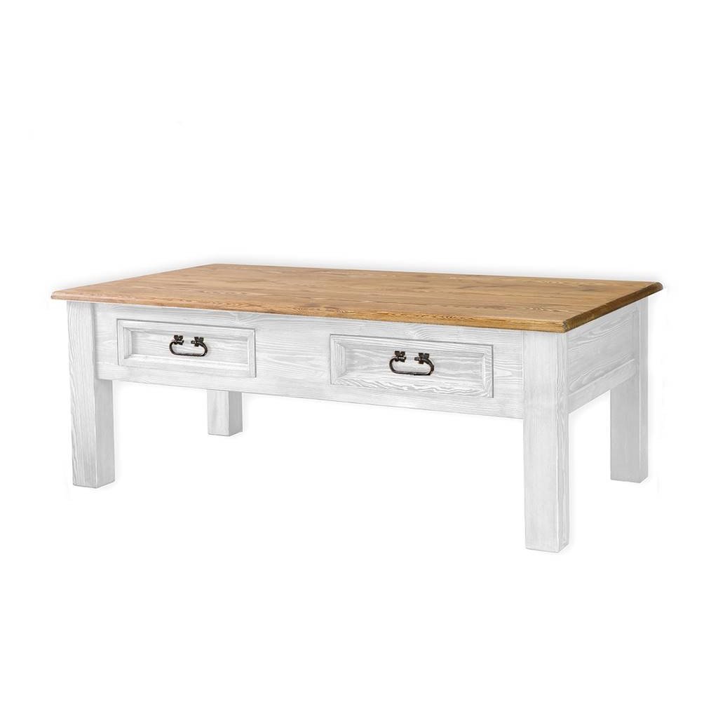 Rustikální konferenční stolek WHITE HOME MES 07 je vyroben z borovicového masivního dřeva a ošetřen voskem v bílé či v dvoubarevné kombinaci, dle Vašeho přání.