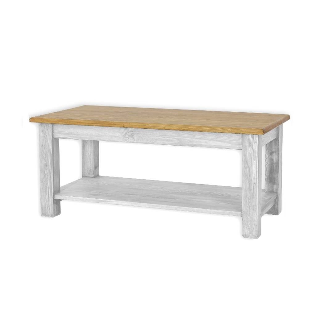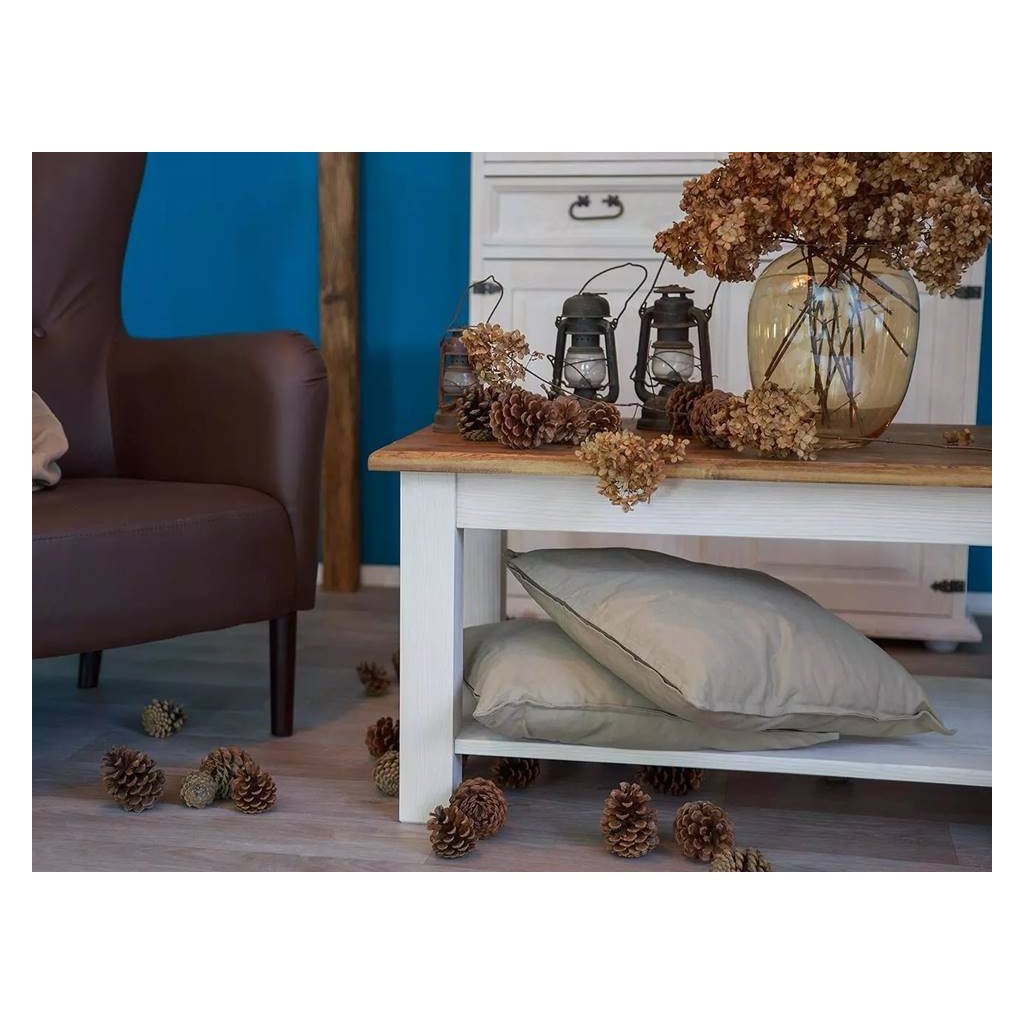 Rustikální konferenční stolek WHITE HOME MES 14 je vyroben z borovicového masivního dřeva a ošetřen voskem v bílé či v dvoubarevné kombinaci, dle Vašeho přání.