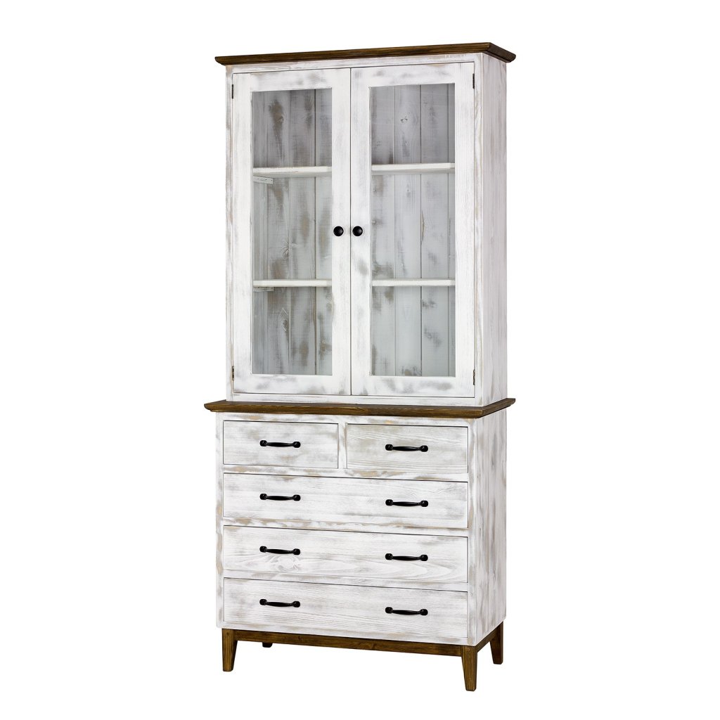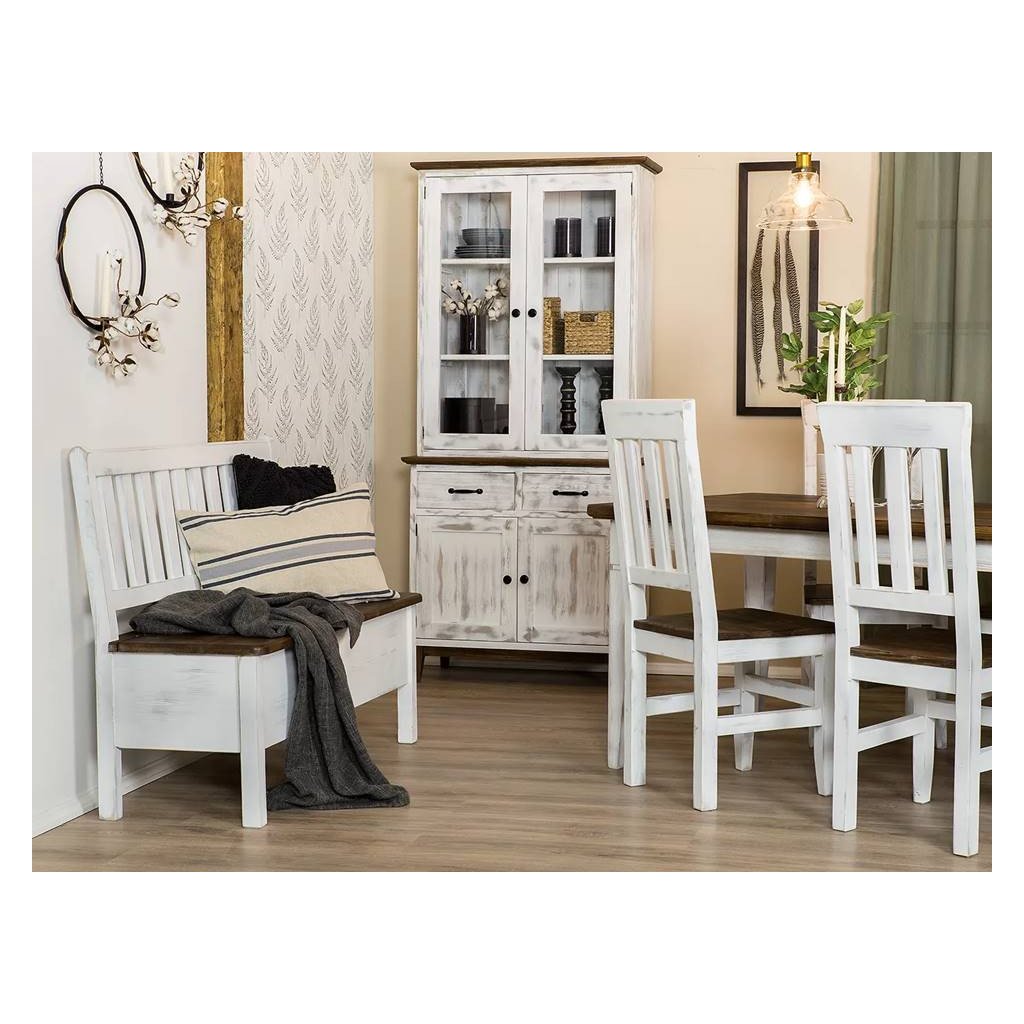 Rustikální kredenc KOLMAR je vyroben z kvalitního masivního borovicového dřeva a ošetřen voskem. Vosk je ručně nanášen štětcem. V naší nabídce můžete vybírat z více barevných variant vosku. Standardním odstínem kolekce KOLMAR je antická bílá kombinovaná s hnědým voskem.