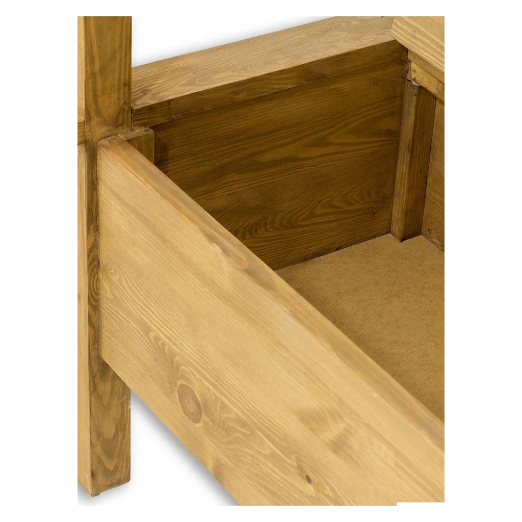 Rustikální lavice CORDOBA je vyrobena výhradně z masivní borovice, která přinese vašemu domovu teplé tony a nádhernou vůni. K ochraně nábytku přispívá rovněž nanesení kvalitního vosku na přírodní bázi, který dá vyniknout osobité kráse dřeva.