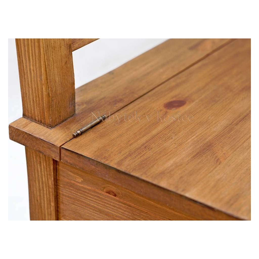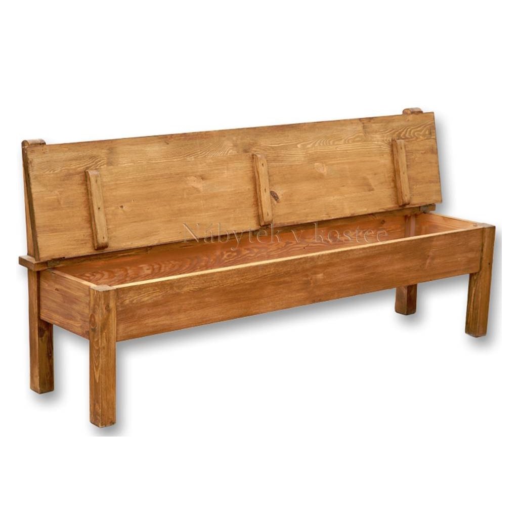 Velkou výhodou je úložný prostor – ideální na ubrusy, prostírání, drobnosti do jídelny nebo sezónní dekorace. Lavice se hodí k jídelnímu stolu, do předsíně jako pohodlné sezení při obouvání, ale i do společenské místnosti na chalupě, kde oceníte robustnost a stabilitu.