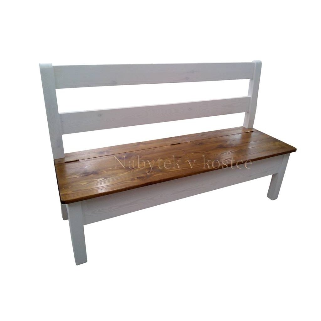 Rustikální lavice SWEET HOME s úložným prostorem je vyrobena z borovicového masivního dřeva a je ošetřena bílou vodou ředitelnou barvou. Horní deska může být ošetřena voskem anebo lakem.