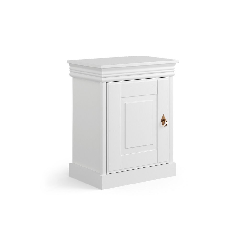 Rustikální noční stolek TOSKANIA z masivu je vyroben z masivní finské borovice v bílé barvě, která rozjasní každý interiér. Finská borovice vyniká svojí odolnosti a nádhernou dřevitou strukturou, kterou můžeme cítit, při každém doteku. Dna šuplíku a záda nočního stolku jsou vyrobeny z dřevovláknité desky HDF.