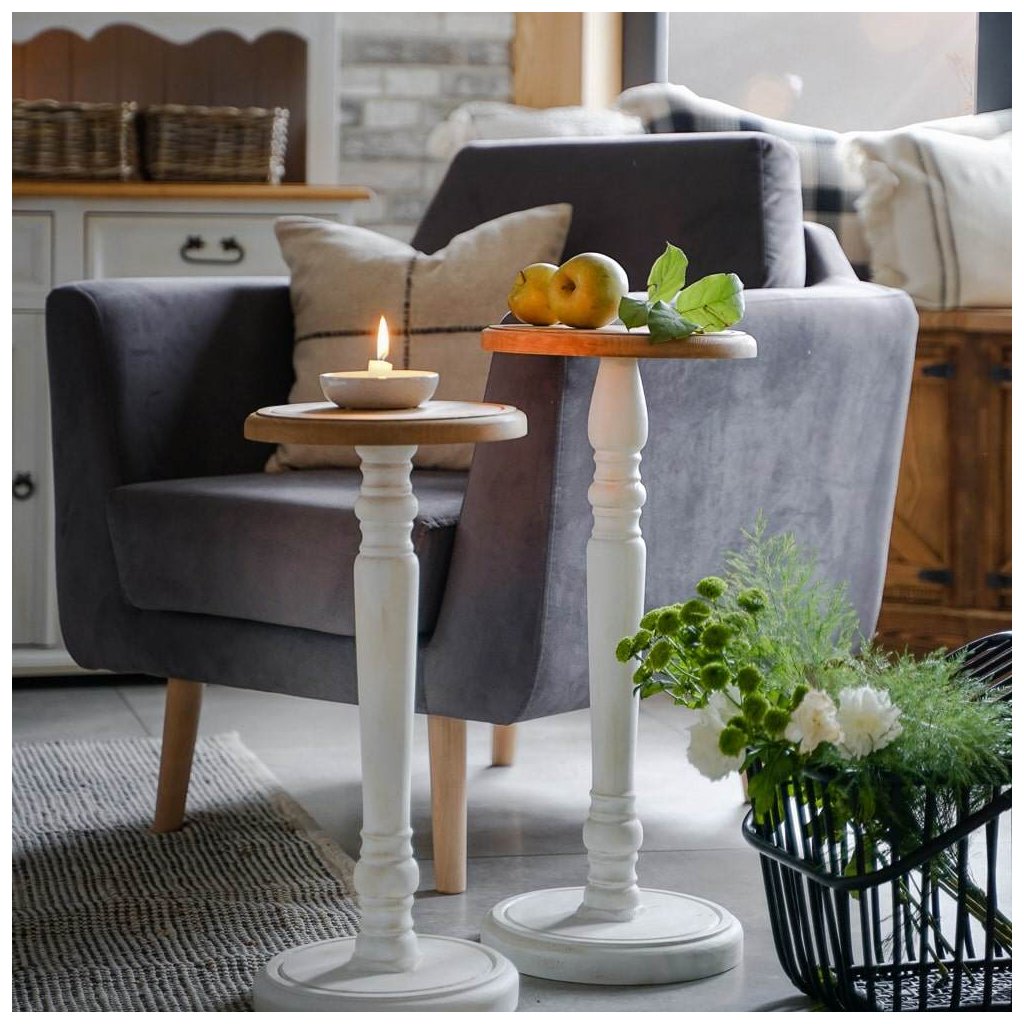 Rustikální kulatý stolek WHITE HOME MES11W66 z masivu