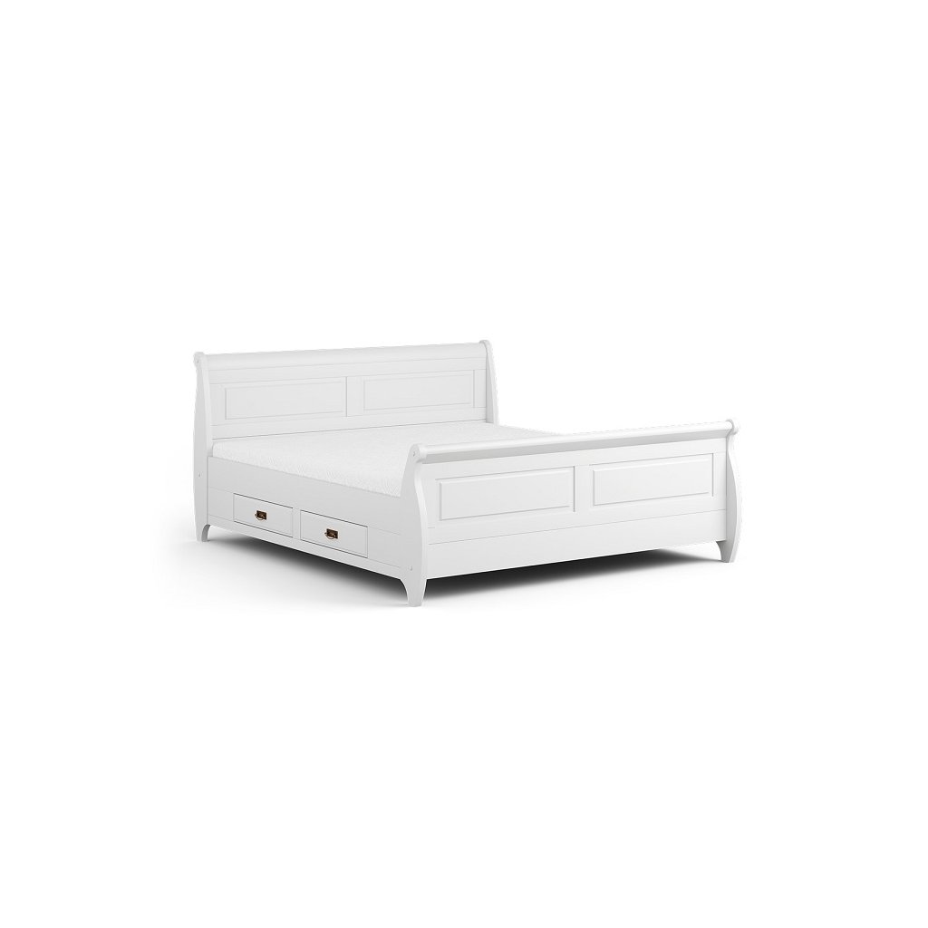 Rustikální postel TOSKANIA z masivu je vyrobena z masivní finské borovice a ošetřena bílou vodou ředitelnou barvou, která rozjasní jakékoliv interiéry vašeho domova. Finská borovice vyniká svojí odolnosti a nádhernou dřevitou strukturou, kterou můžeme cítit, při každém doteku. Dna šuplíku jsou vyrobeny z dřevovláknité desky HDF.