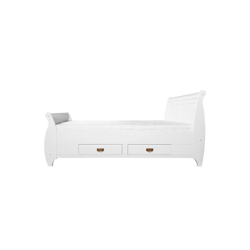 Rustikální postel TOSKANIA z masivu je vyrobena z masivní finské borovice a ošetřena bílou vodou ředitelnou barvou, která rozjasní jakékoliv interiéry vašeho domova. Finská borovice vyniká svojí odolnosti a nádhernou dřevitou strukturou, kterou můžeme cítit, při každém doteku. Dna šuplíku jsou vyrobeny z dřevovláknité desky HDF.